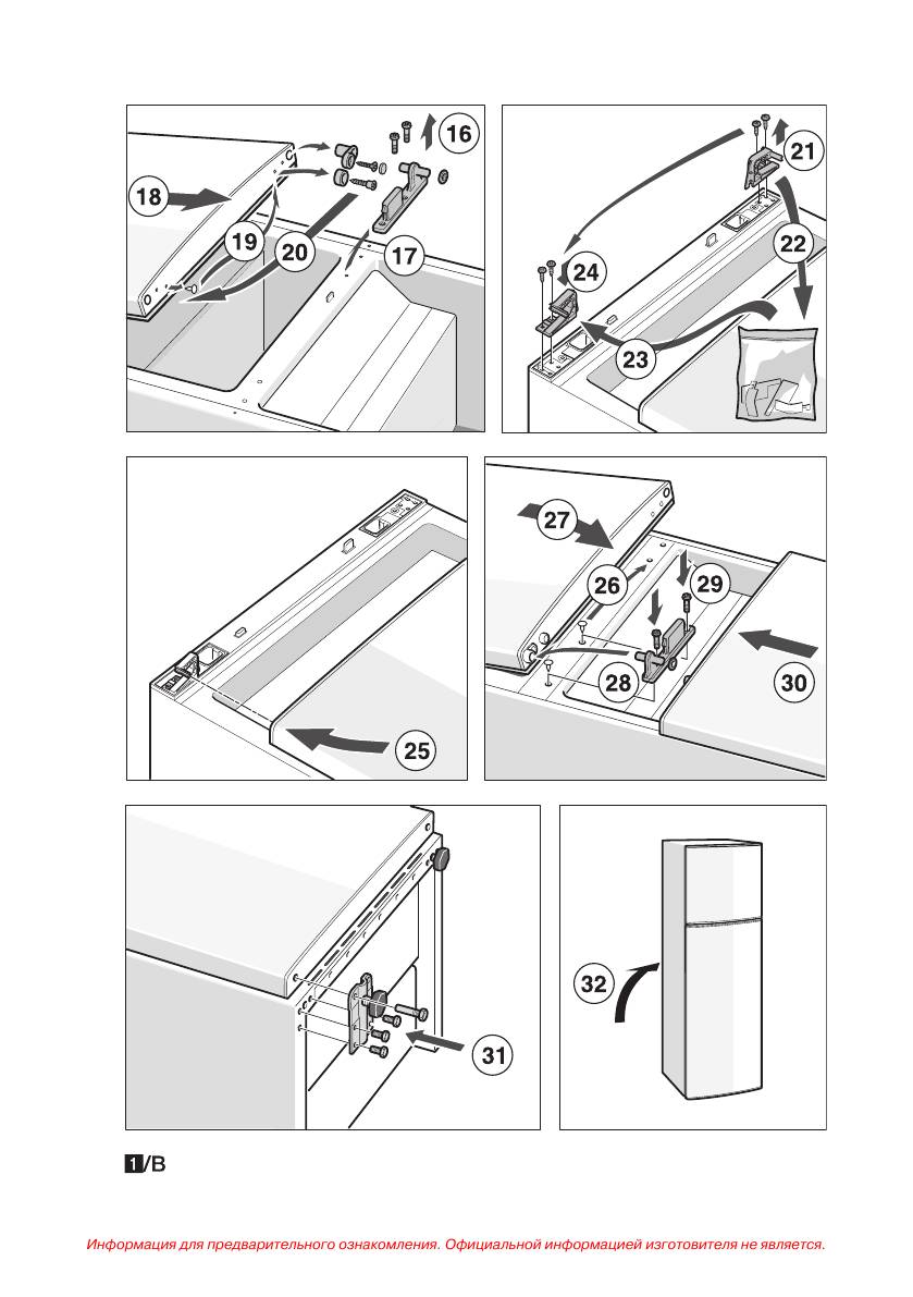 навешивание дверей холодильника
