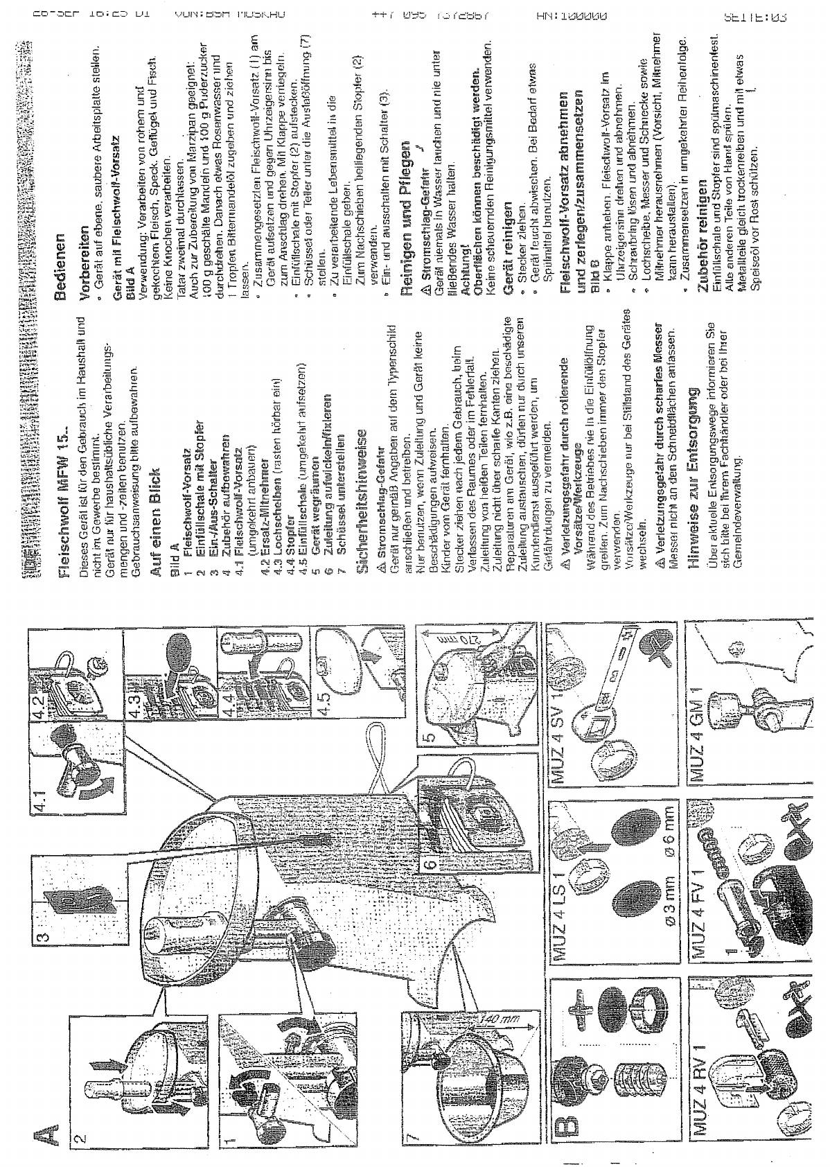 Инструкция к Мясорубке Bosch MFW 1501