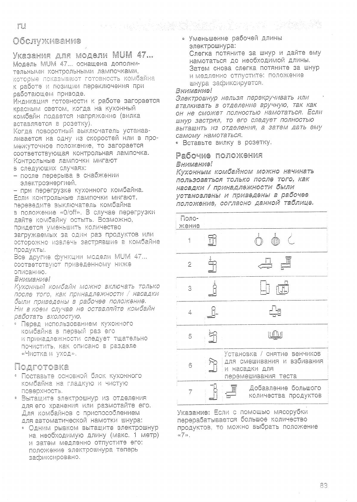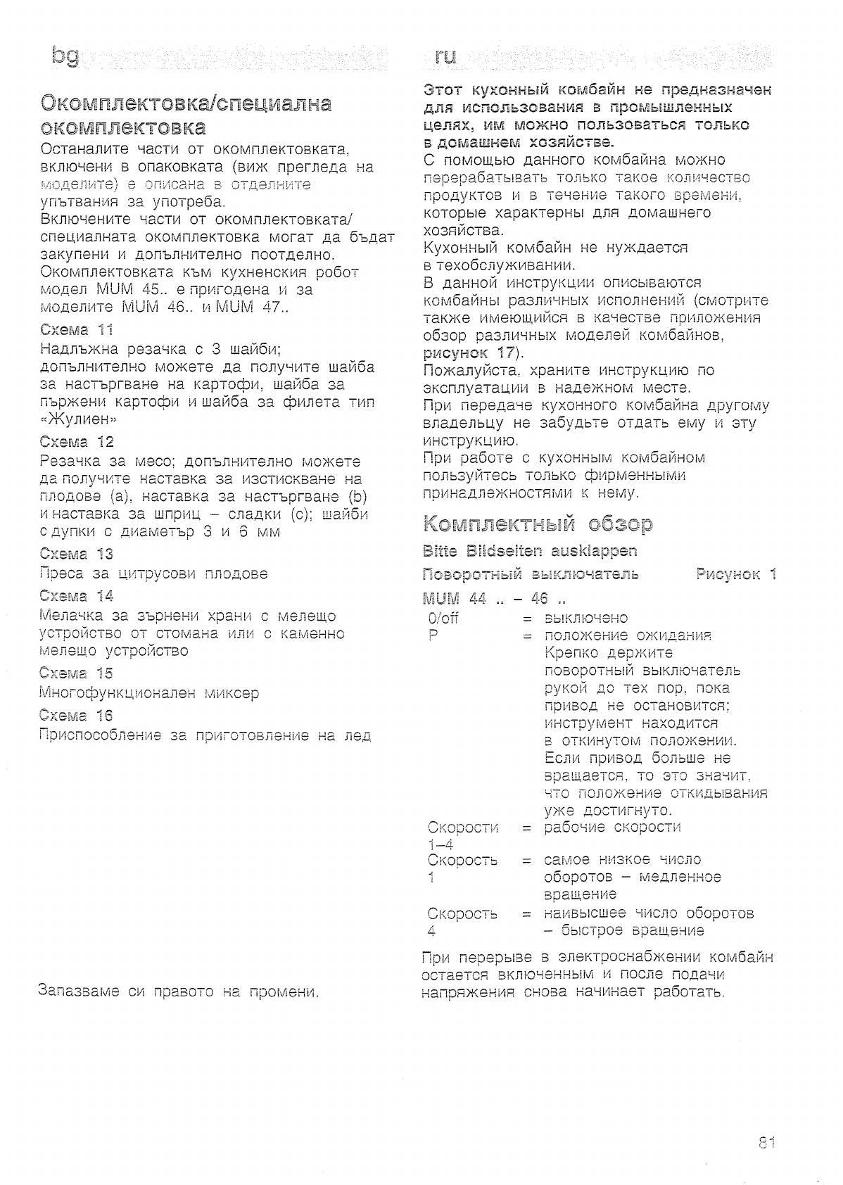 Инструкция к Кухонному Комбайну Bosch MUM 4756 EU