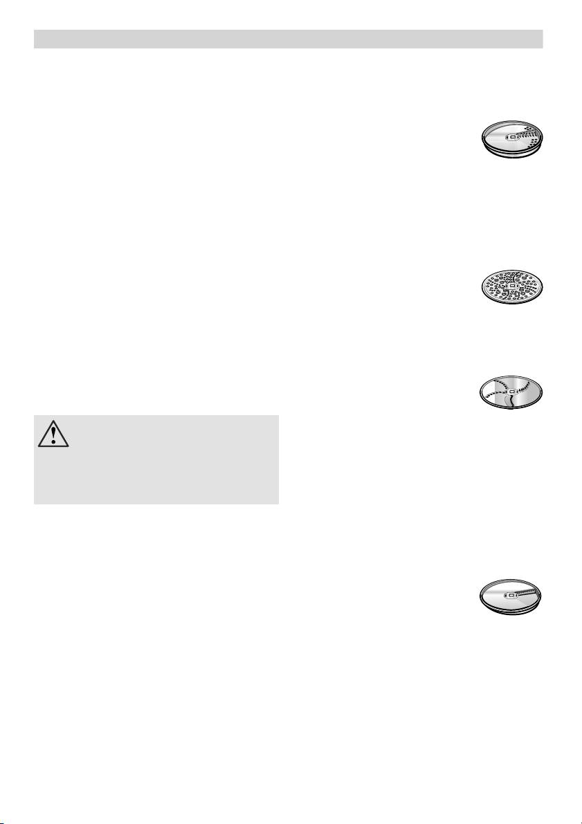 greifen. Zerkleinerungsscheiben nur am Rand anfassen!