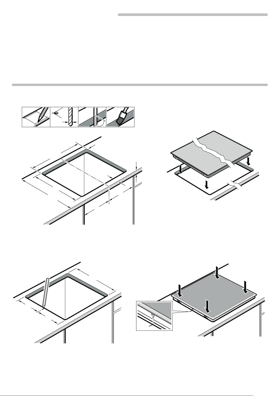 3. Align the markings on the hob surround and cut-out