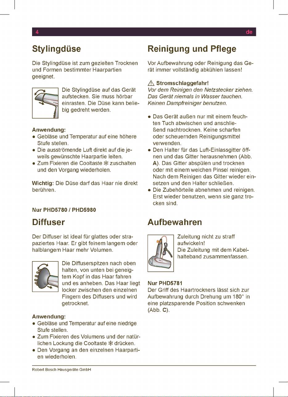 Инструкция к Bosch PHD5560 Haartrockner beautixx comfort ion