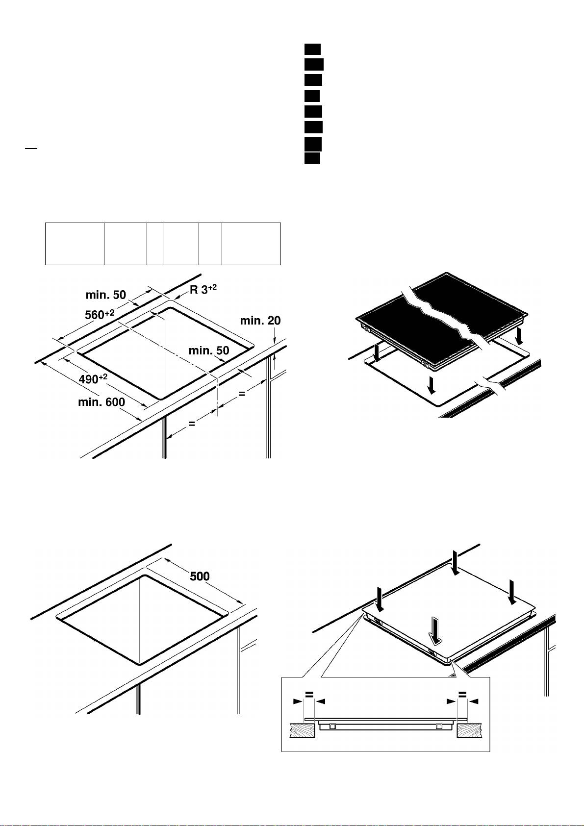 Insert the hob in the existing worktop cut-out with a depth of