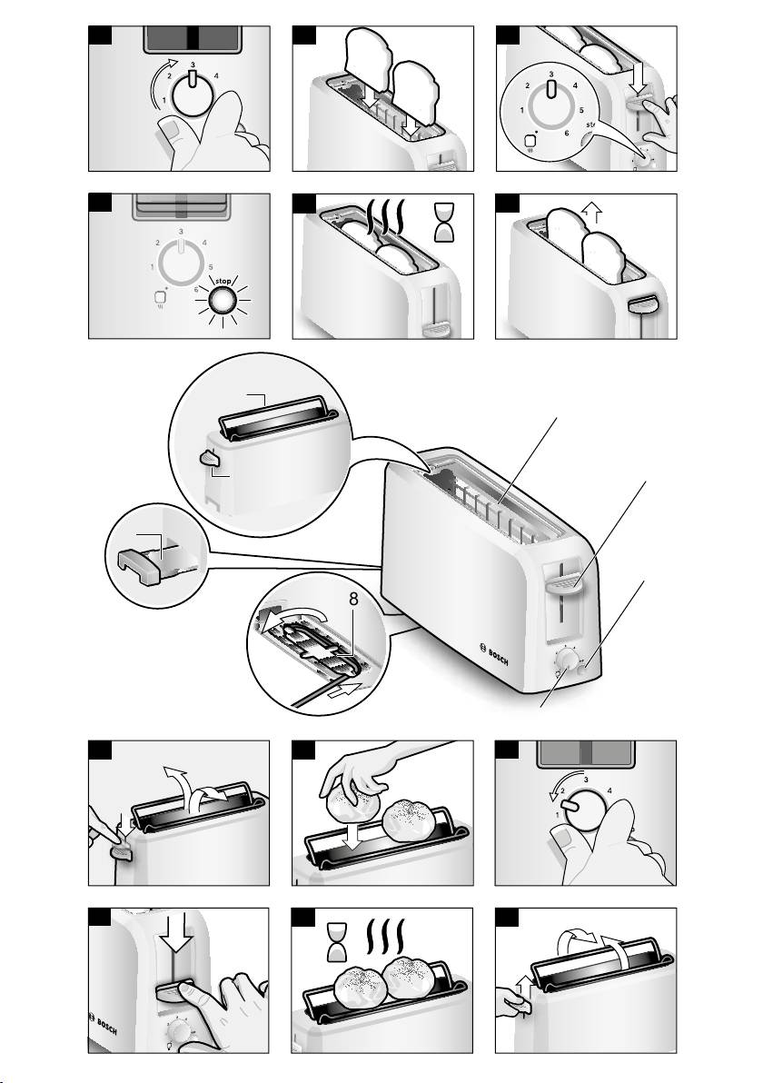 Инструкция к Тостеру Bosch TAT3A001 Toaster Langschlitz CompactClass Primärfarbe weiß Sekundärfarbe Hellgrau
