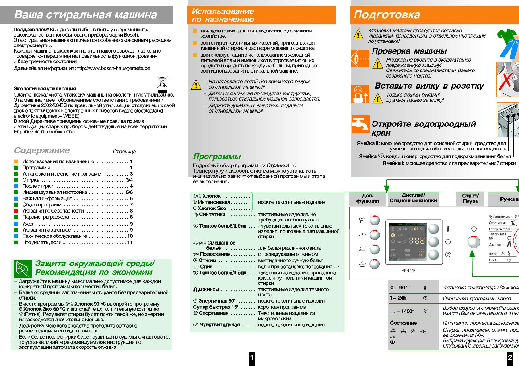 Инструкция к Стиральной Машине Bosch WAE 20442 OE