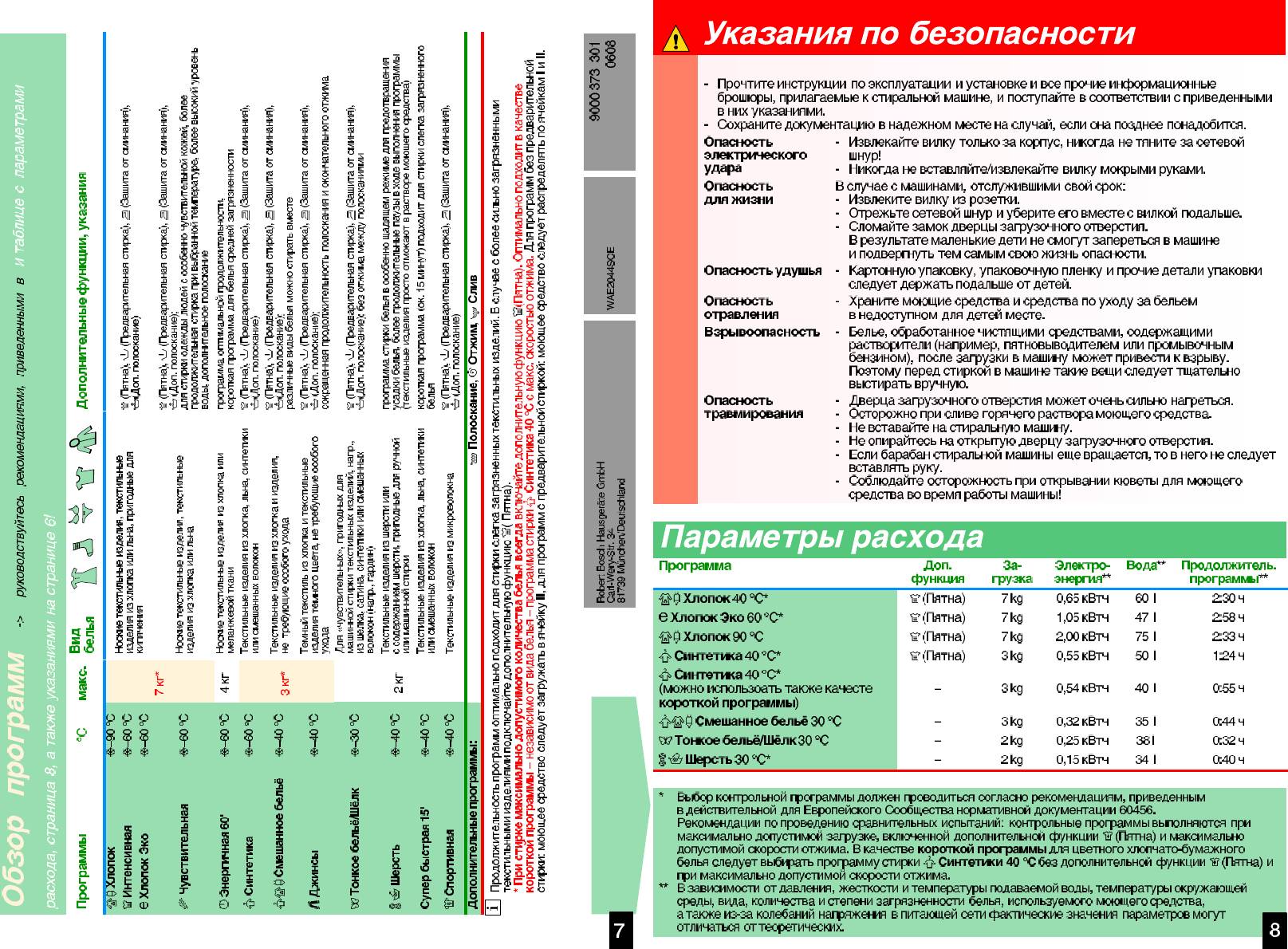 Инструкция к Стиральной Машине Bosch WAE 2044S OE