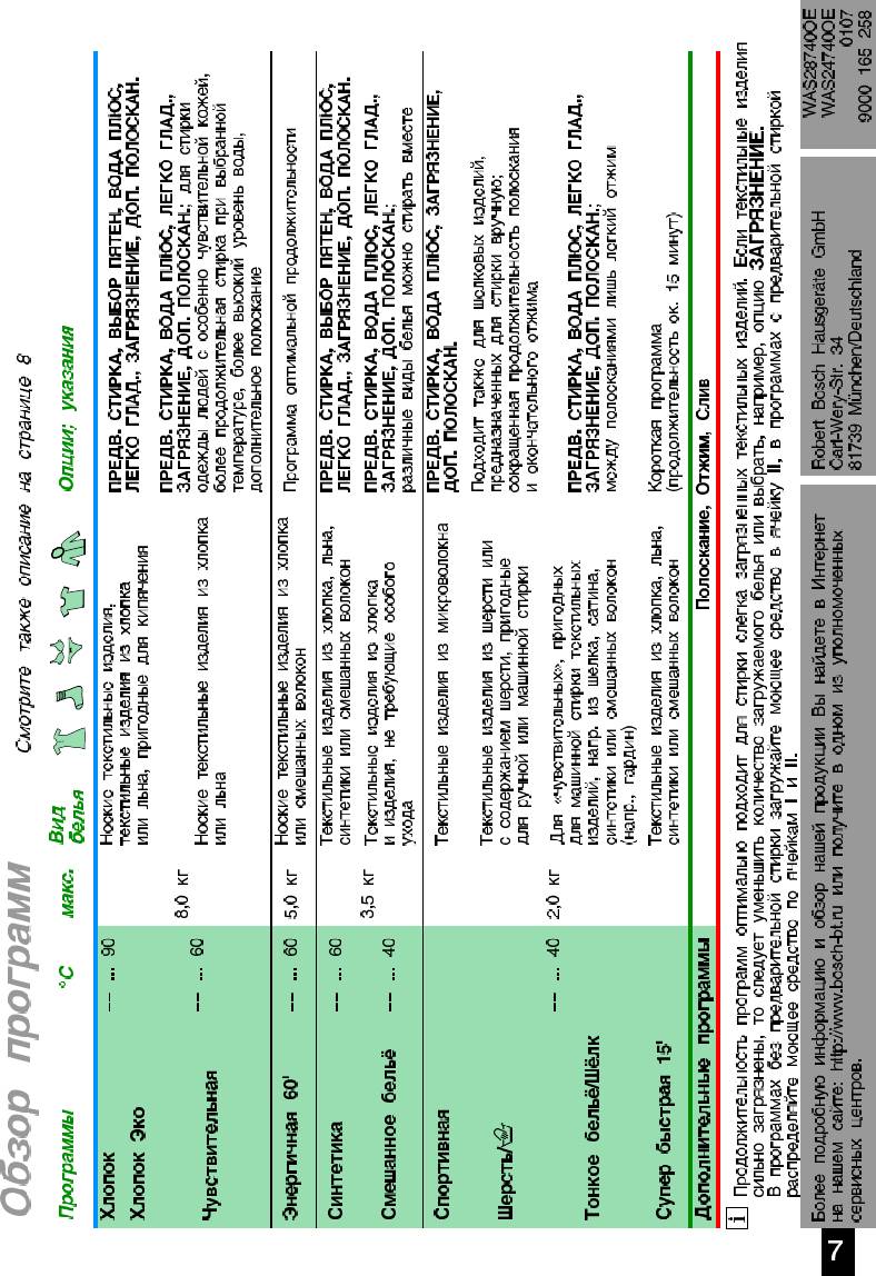 Инструкция к Стиральной Машине Bosch WAS 2874B OE