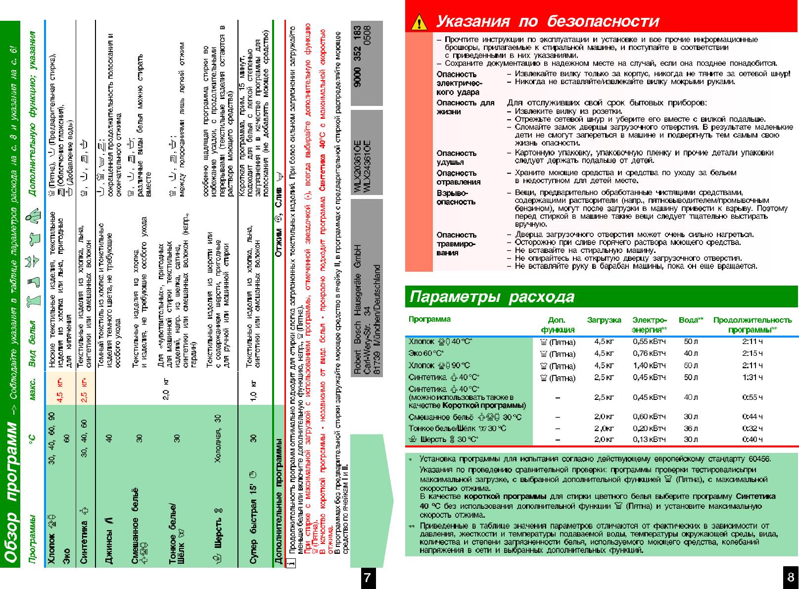 Инструкция к Стиральной Машине Bosch WLX 20361 OE