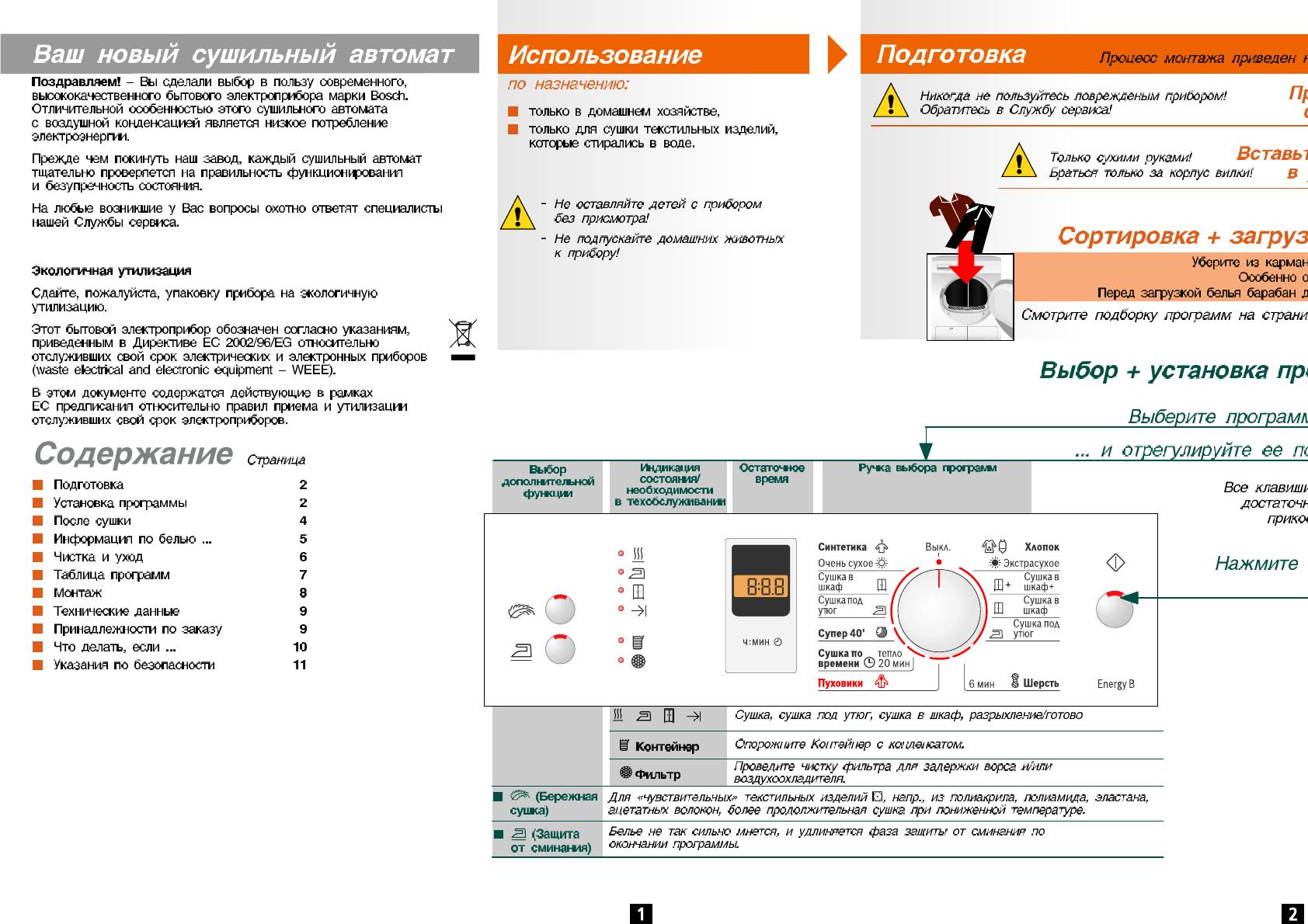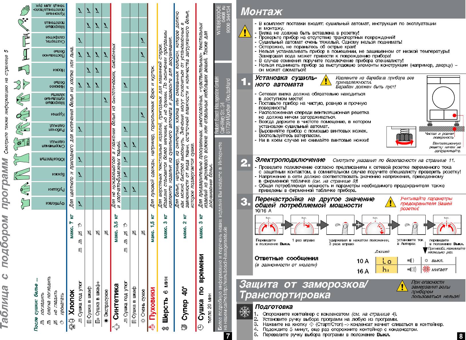 Инструкция к Сушильной Машиной Bosch WTE 86303 OE