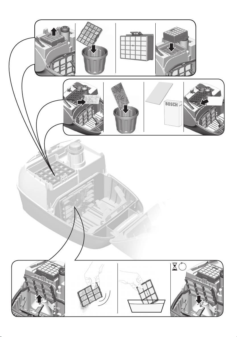 No aspirar nunca sin la bolsa filtrante, el depósito de polvo,