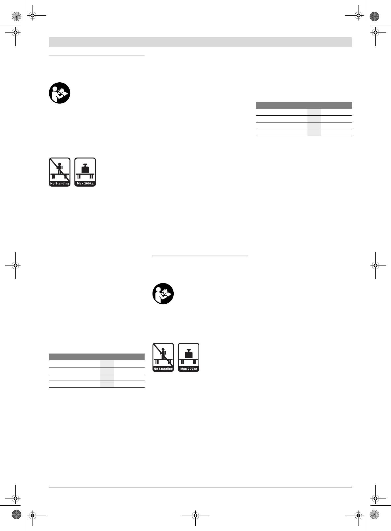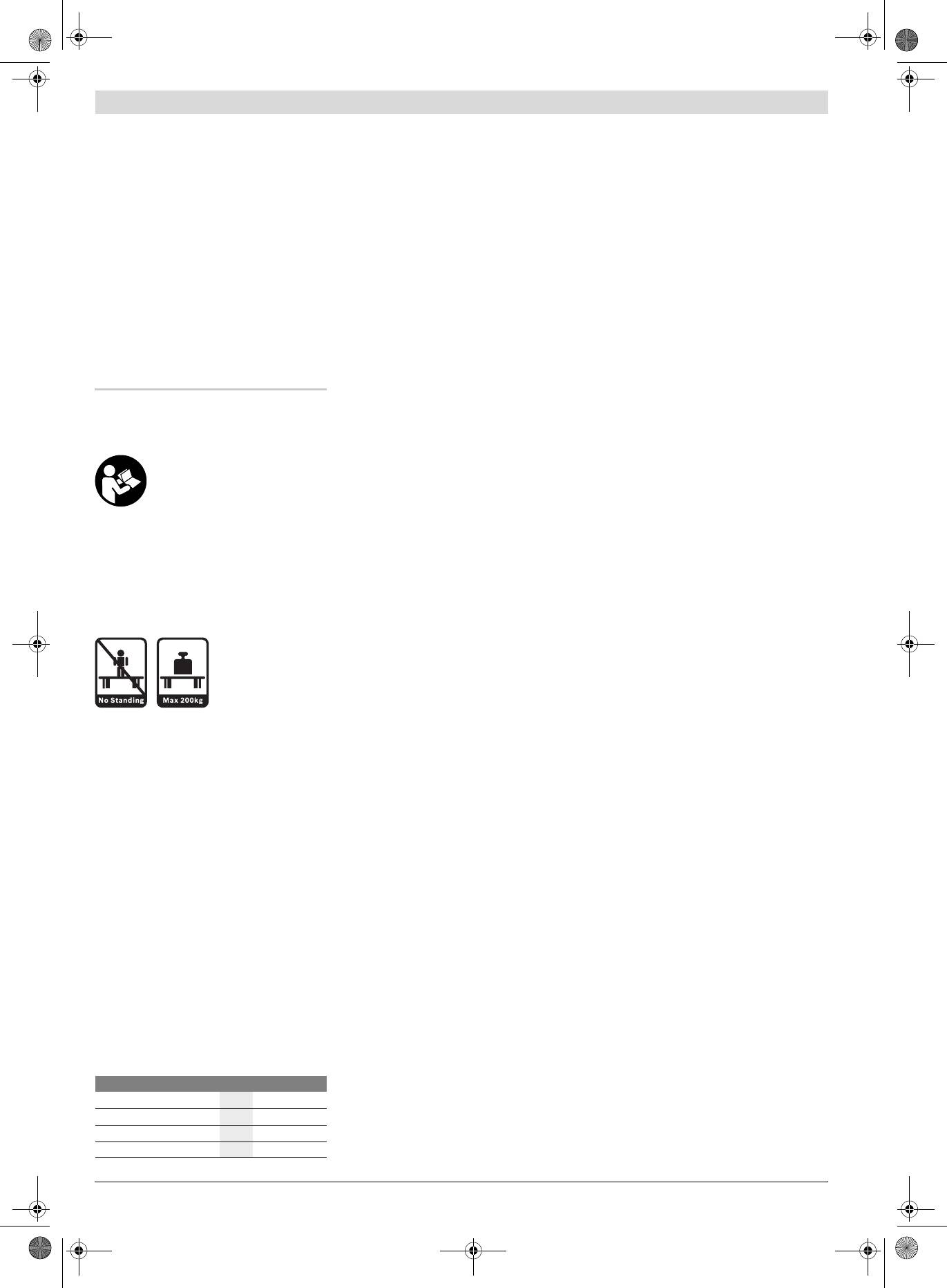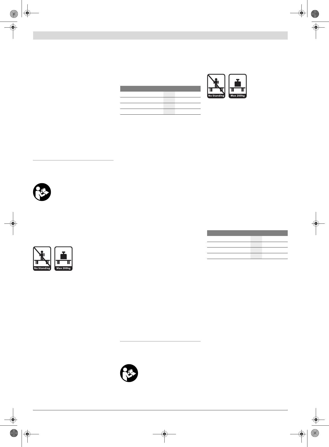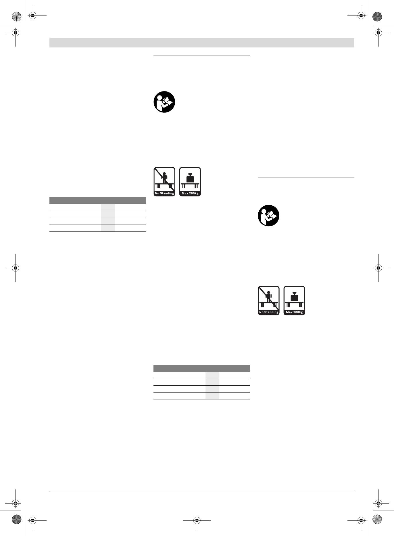 f Darbinį stalą tinkamai sumontuokite ir prieš