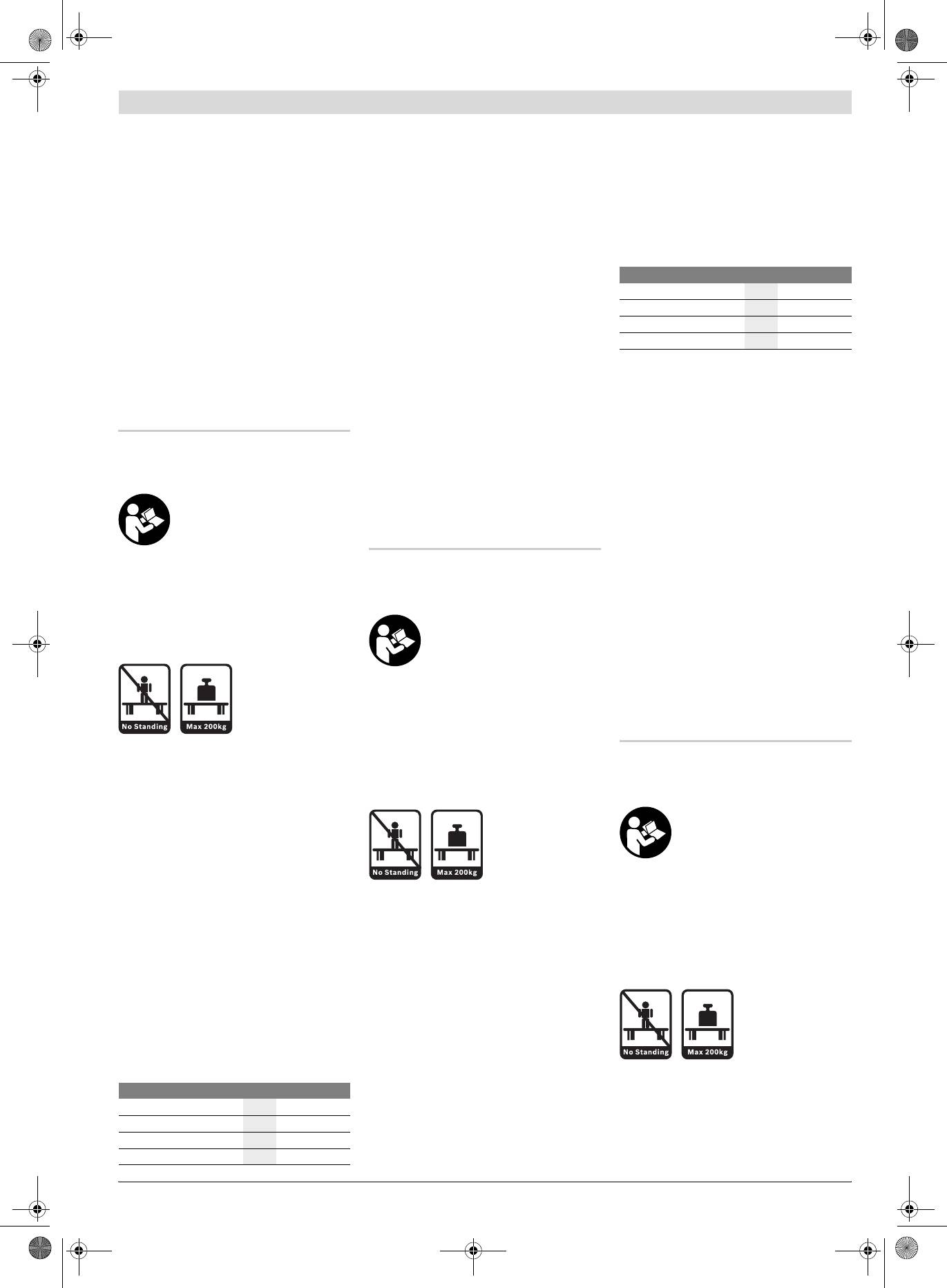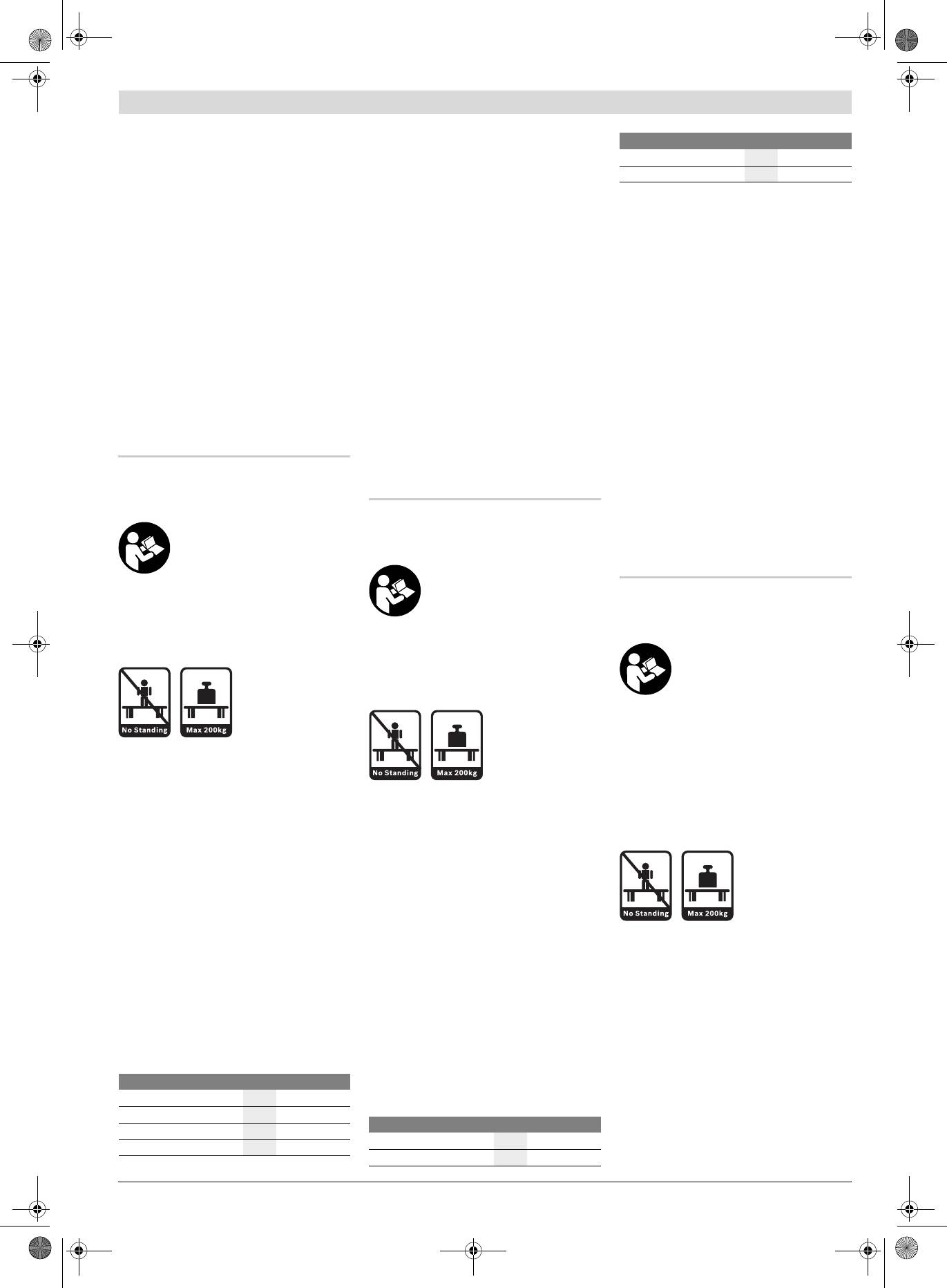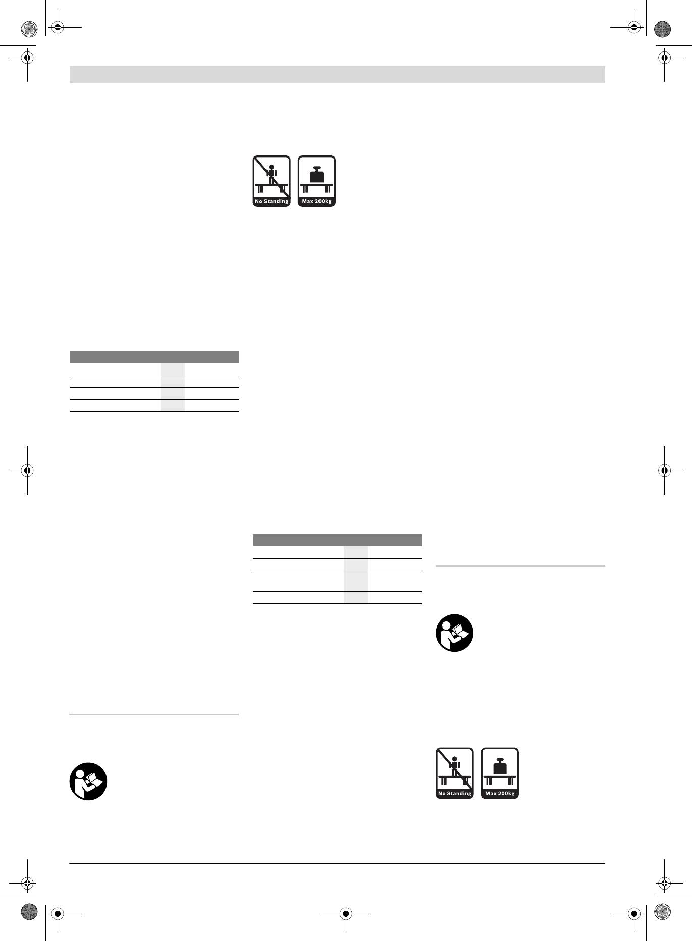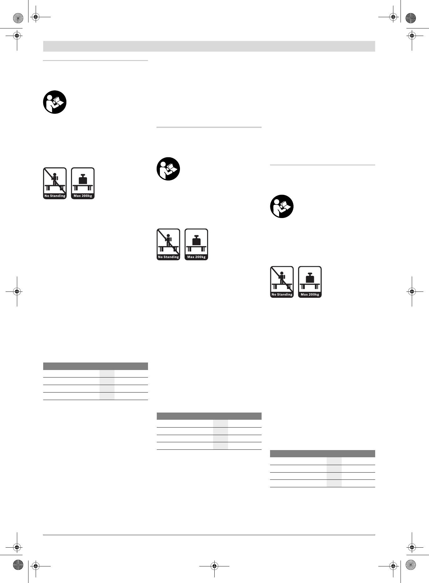 f Darbinį stalą tinkamai sumontuokite ir prieš