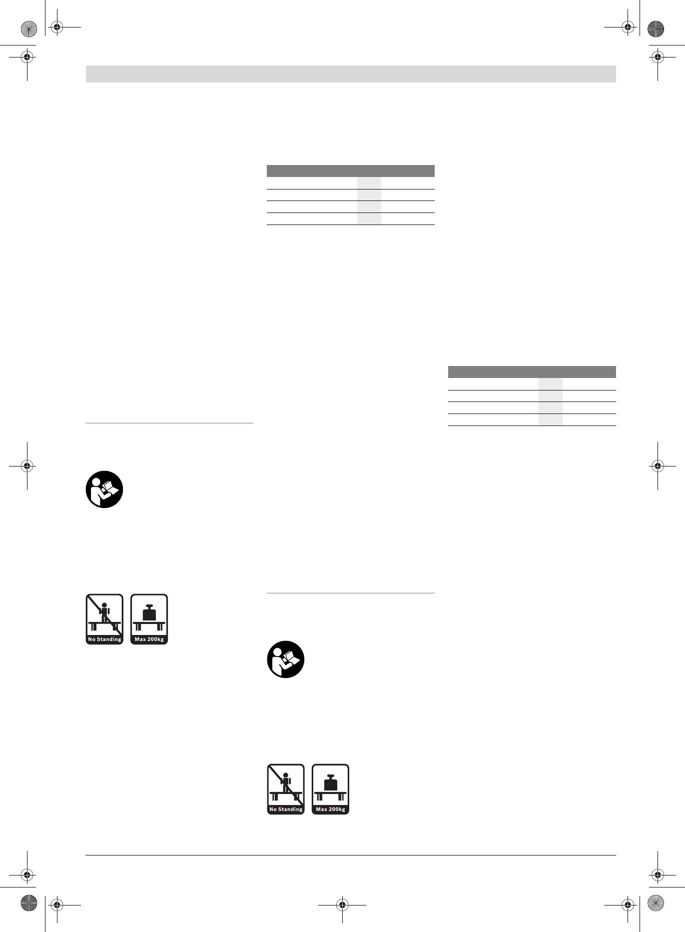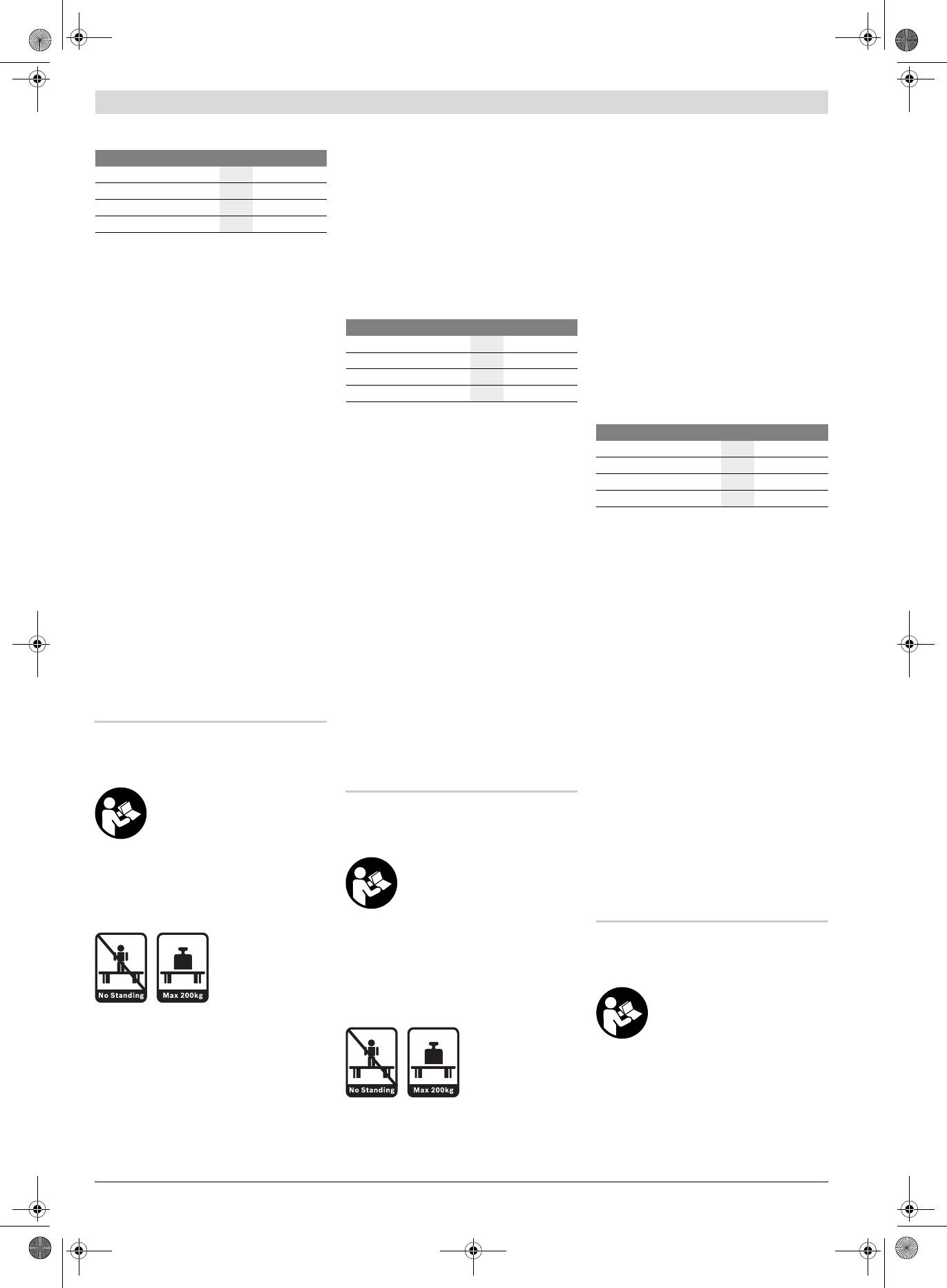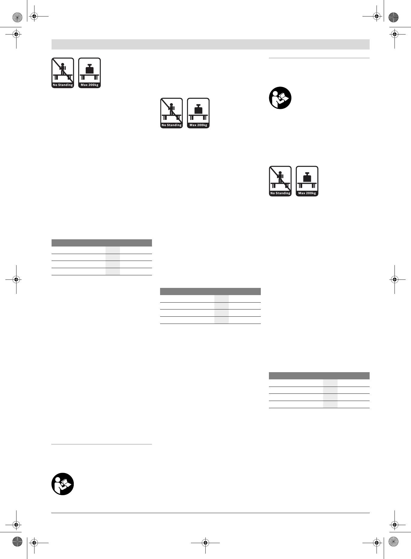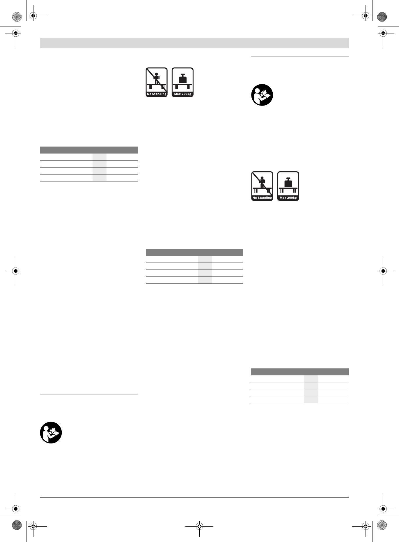 f Darbinį stalą tinkamai sumontuokite ir prieš
