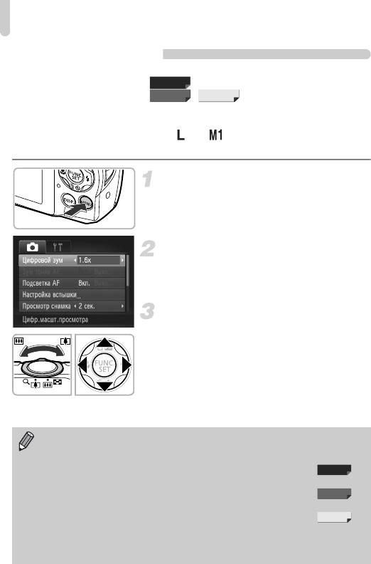 Для отключения цифрового зума нажмите кнопку n, выберите пункт [Цифровой зум]