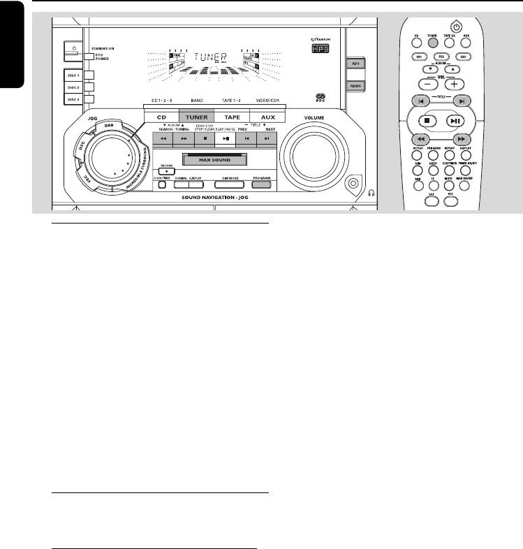 2 Снова нажмите TUNER для выбоpа нужной