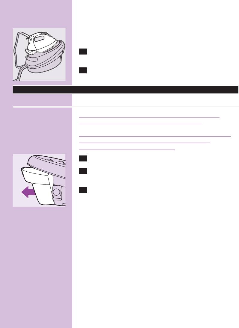 ◗ Never immerse the iron or the steam tank in water.