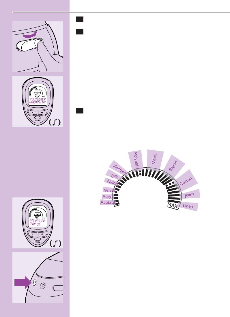 3 Aby wybrać temperaturę prasowania odpowiednią dla danego