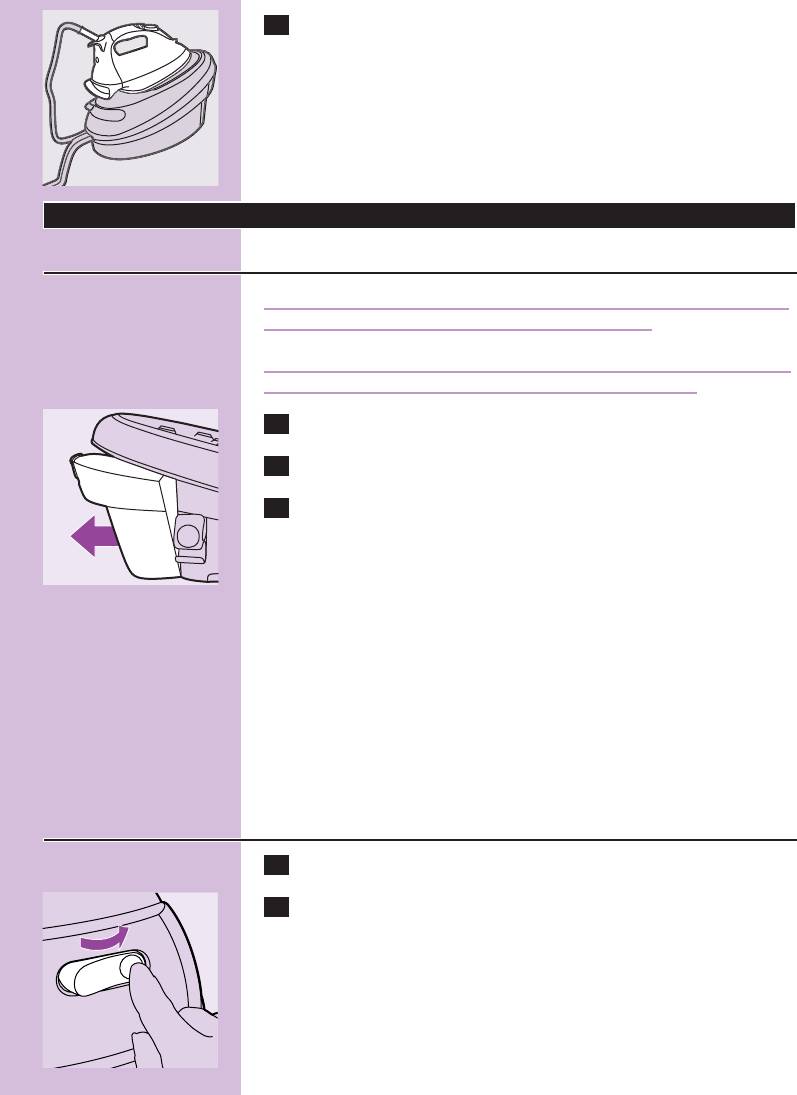 ◗ Nigdy nie zanurzaj w wodzie żelazka ani zbiornika parowego.