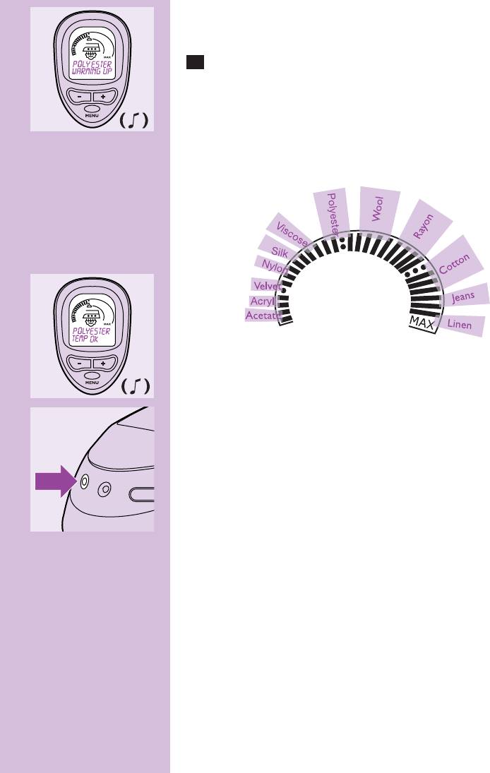 że stopa żelazka osiągnęła już wybraną temperaturę.