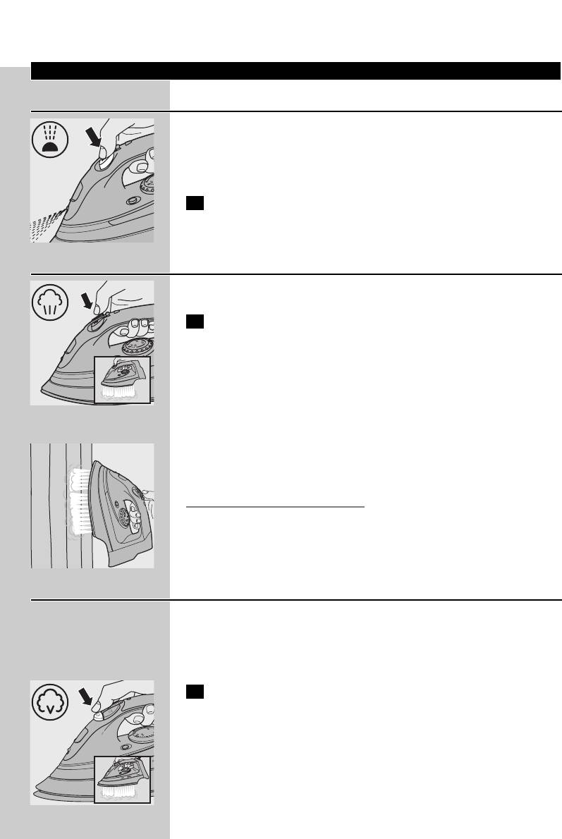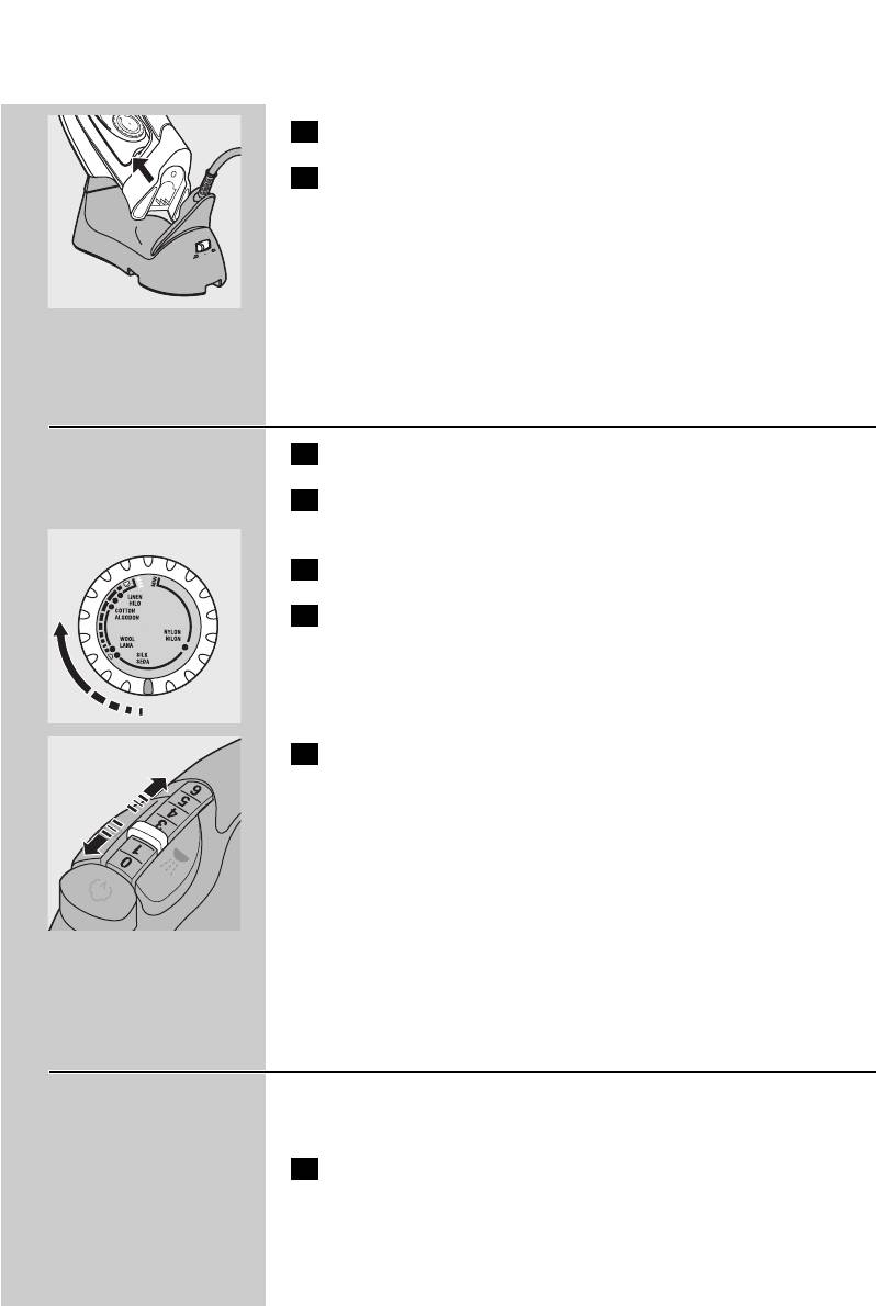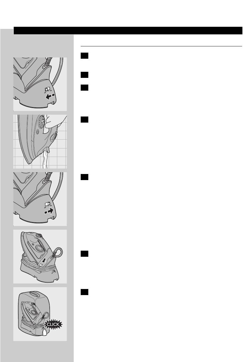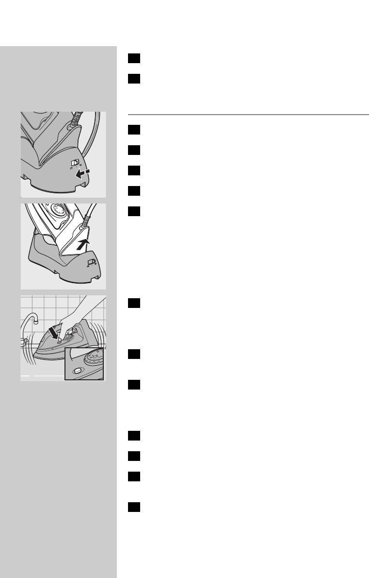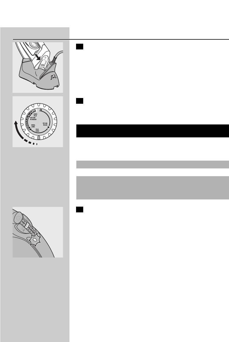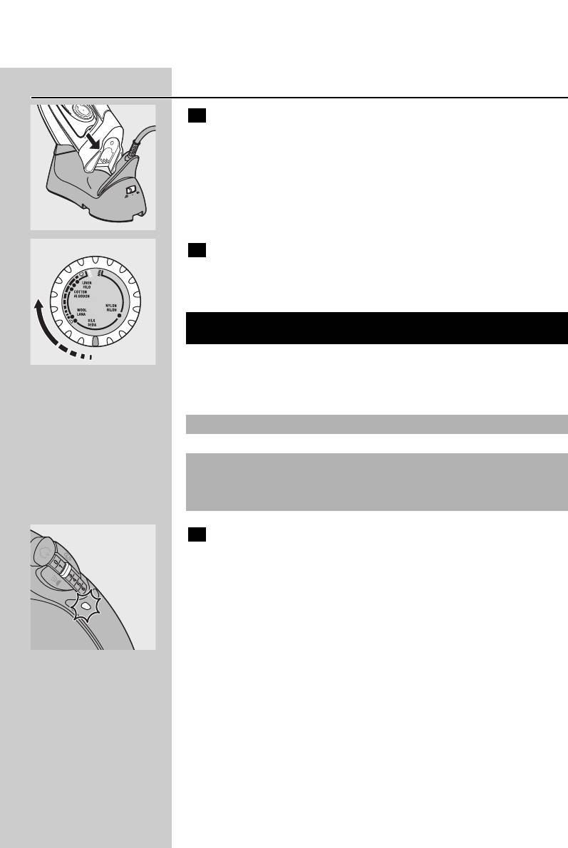 ◗ Never immerse the iron and the stand, if provided, in water.
