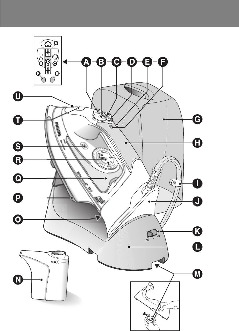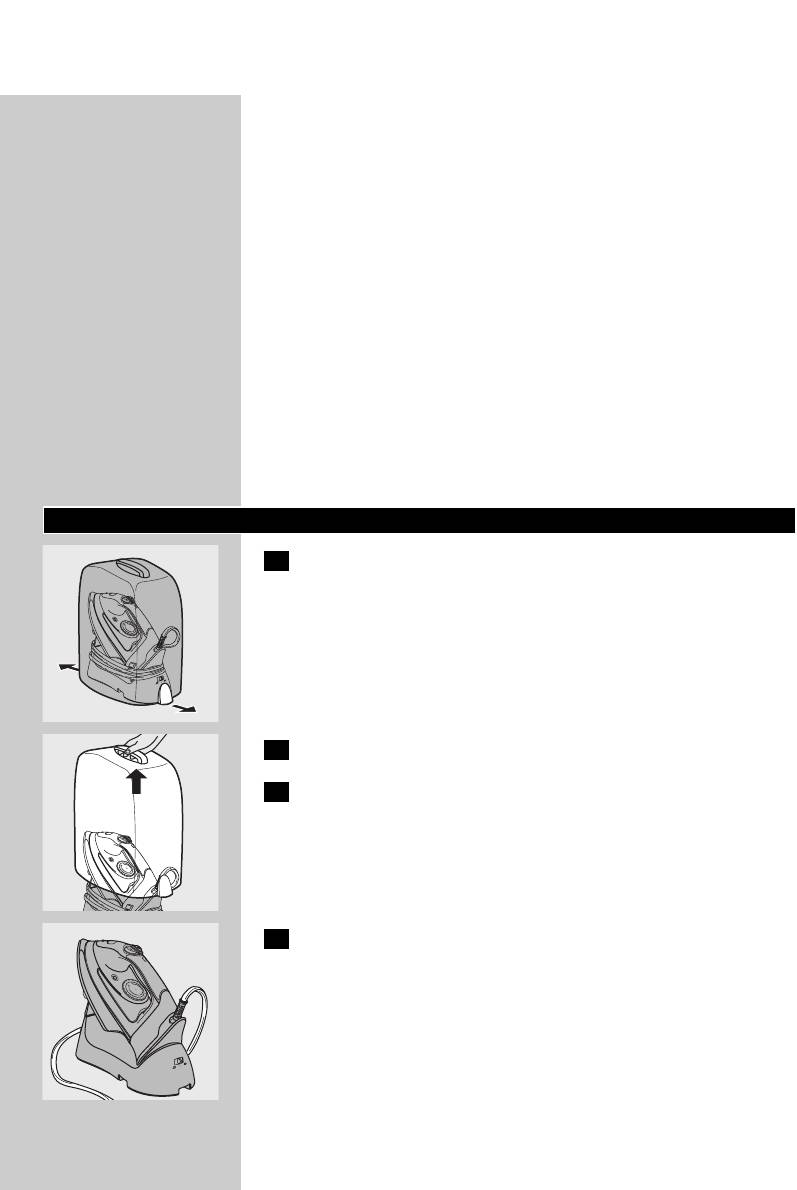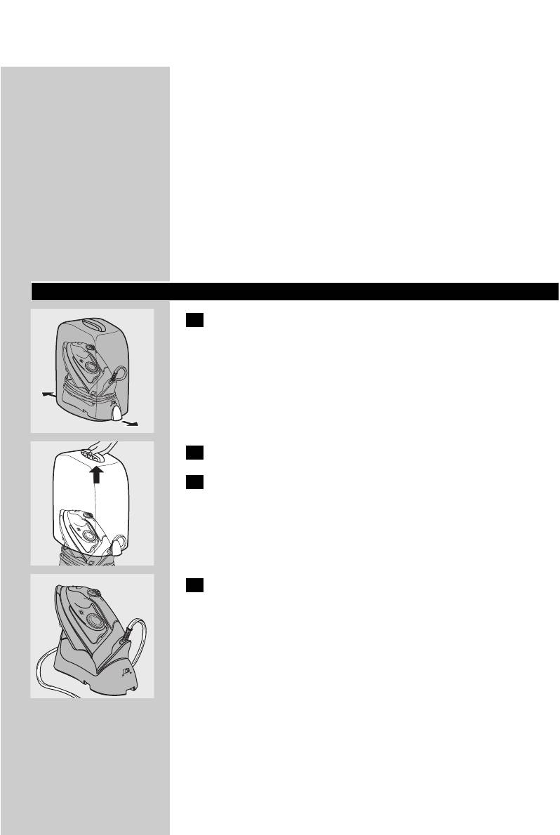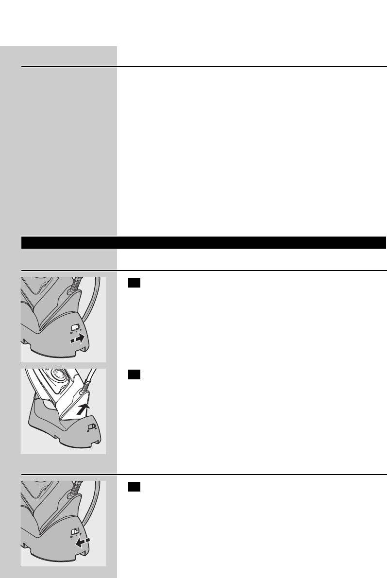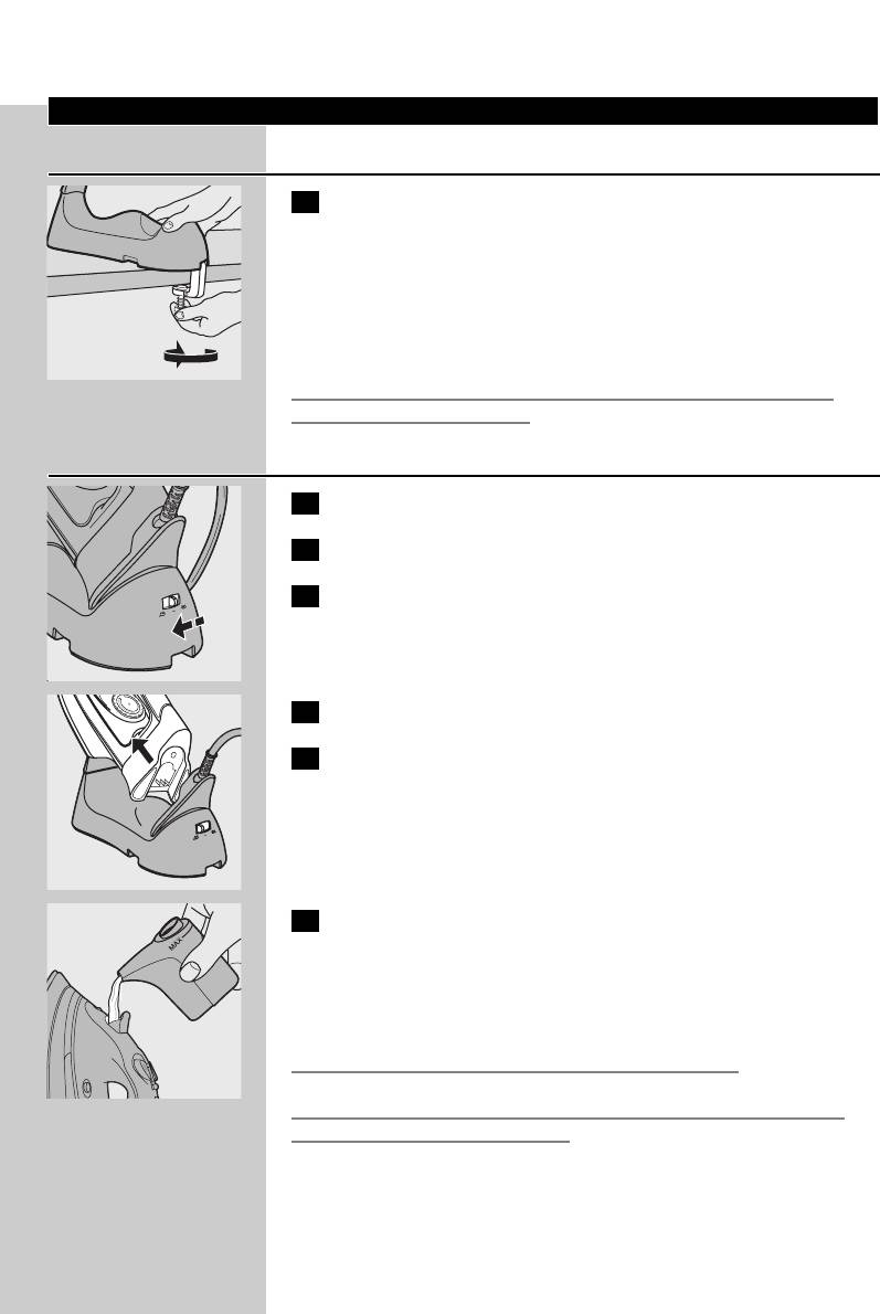 ◗ Never immerse the iron and the stand, if provided, in water.