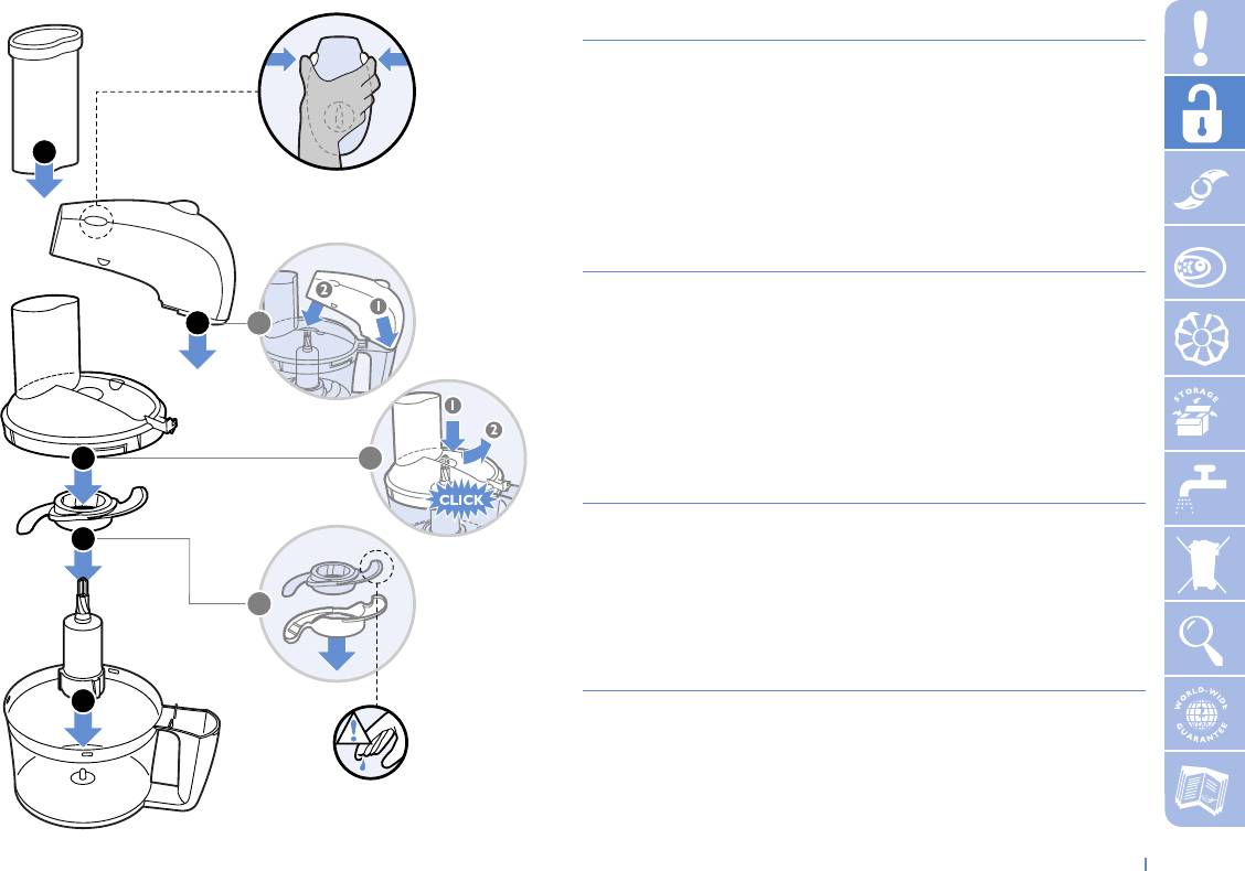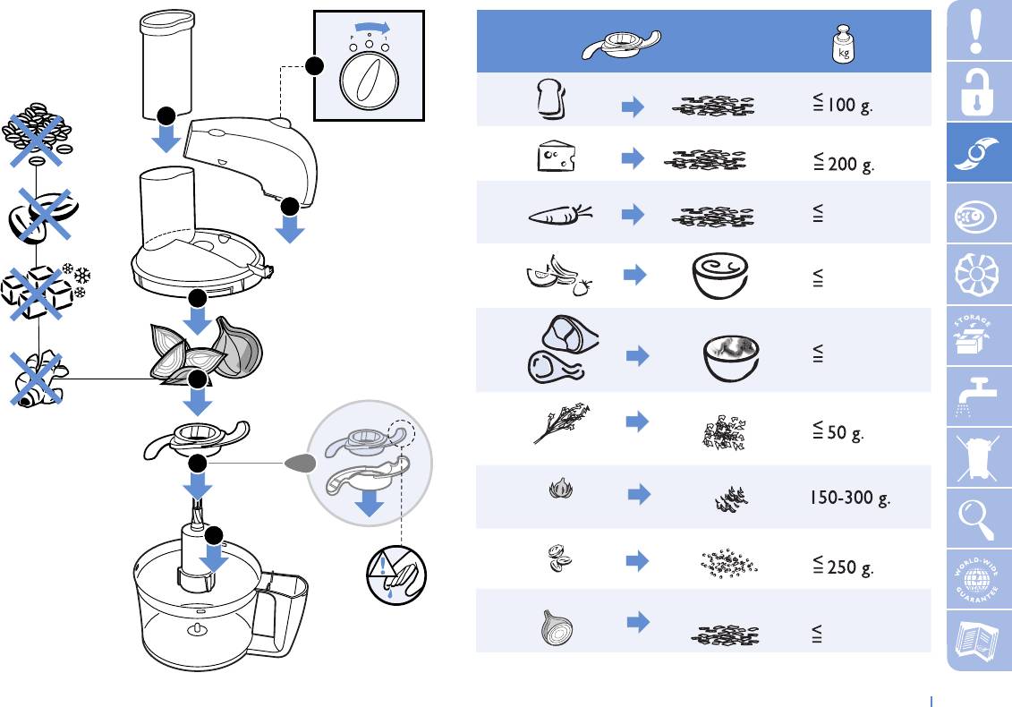 ◗ Работая с ножами или вставками, будьте очень осторожны,