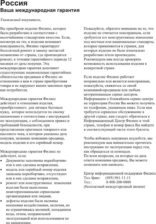 (www.Philips.com/support). При обращении