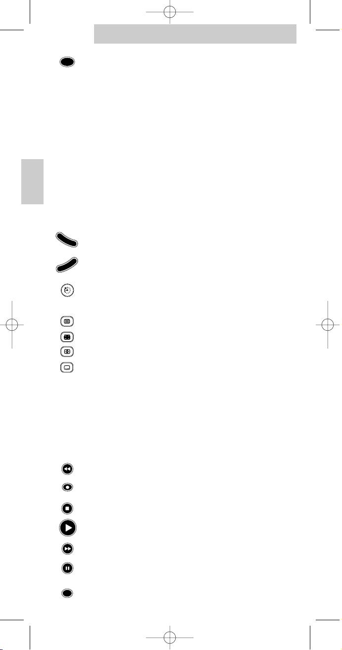 Power: to switch TV/VCR/SAT/DVD on and off.