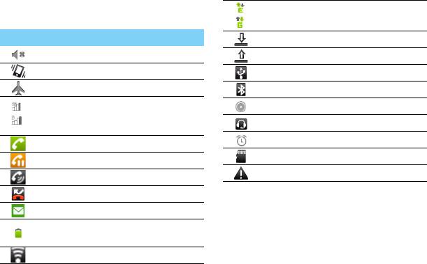 Информация о значках и символах на экране.