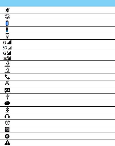 Информация о значках и символах на экране.