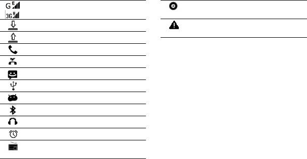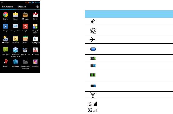 Информация о значках и символах на экране.