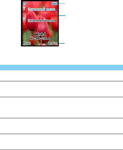Основной экран телефона имеет следующие элементы:
