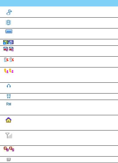 Объяснение значков и символов, отображающихся на экране.