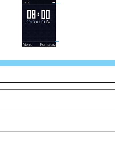 Главный экран вашего телефона имеет следующие зоны: