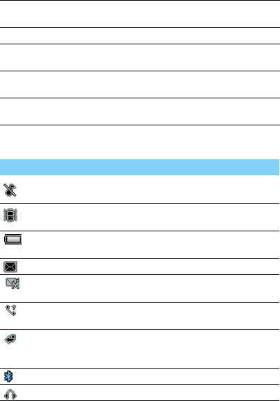 Информация о значках и символах на экране.