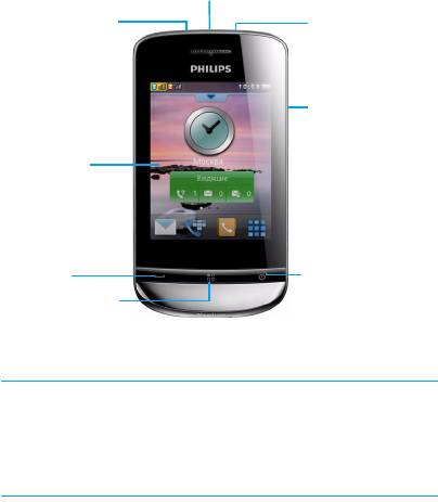Главный экран вашего телефона имеет следующие зоны:
