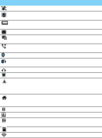 Информация о значках и символах на экране.