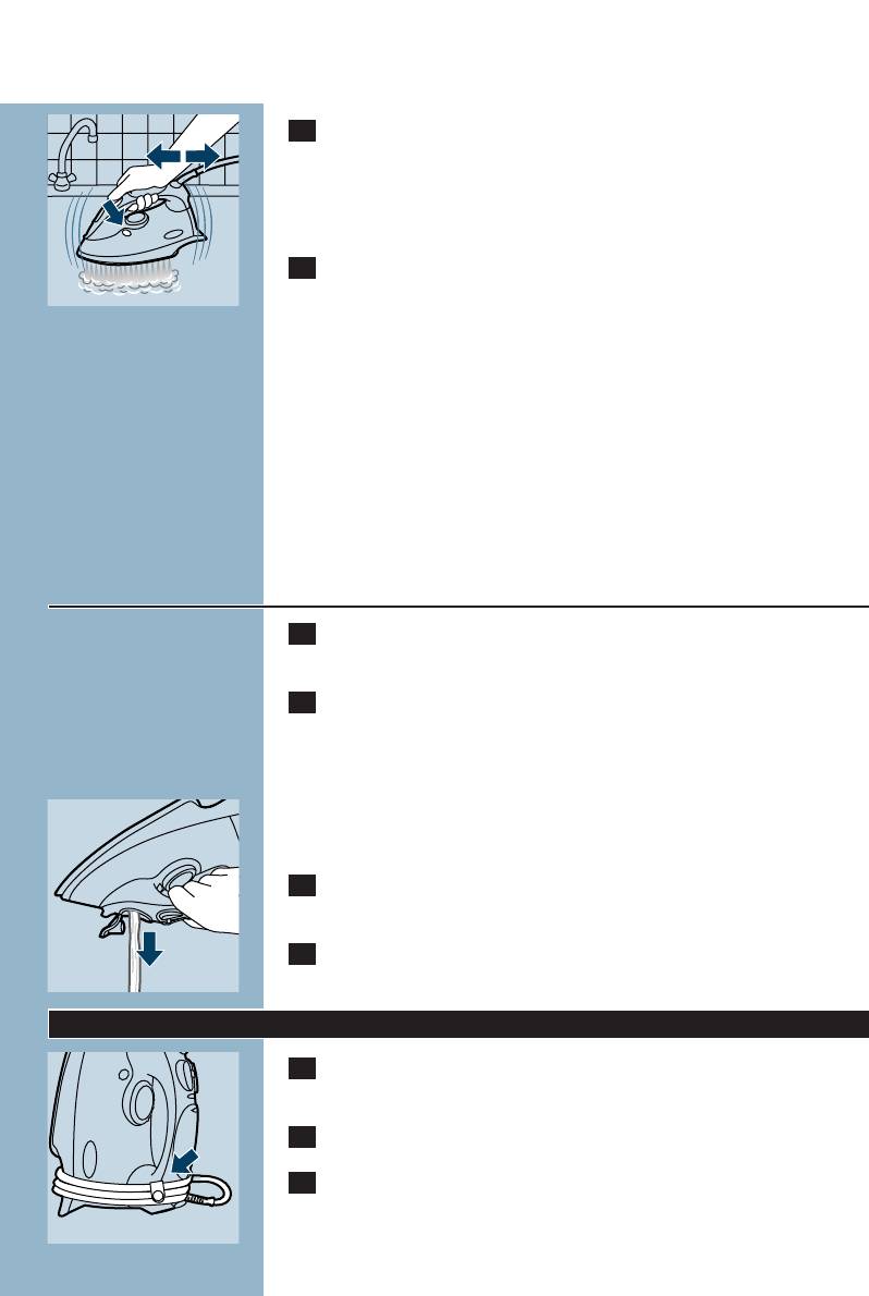 - По окончании глажения, во время заполнения или опорожнения