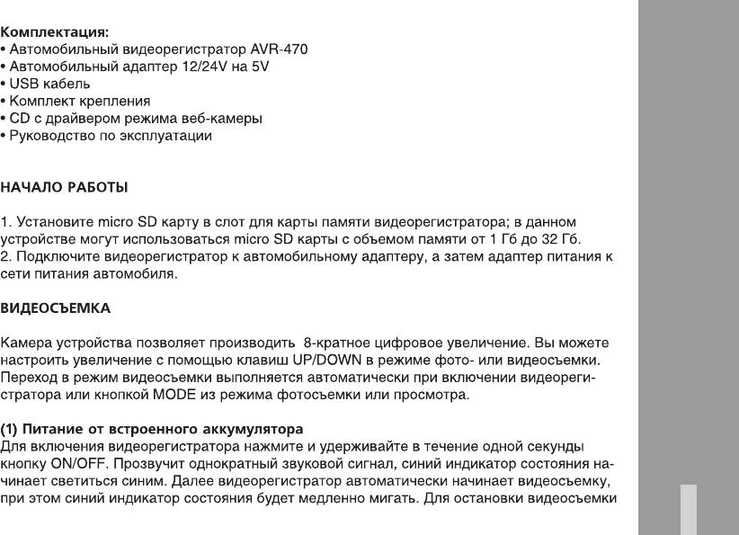 Инструкция к Видеорегистратору Ritmix AVR-470