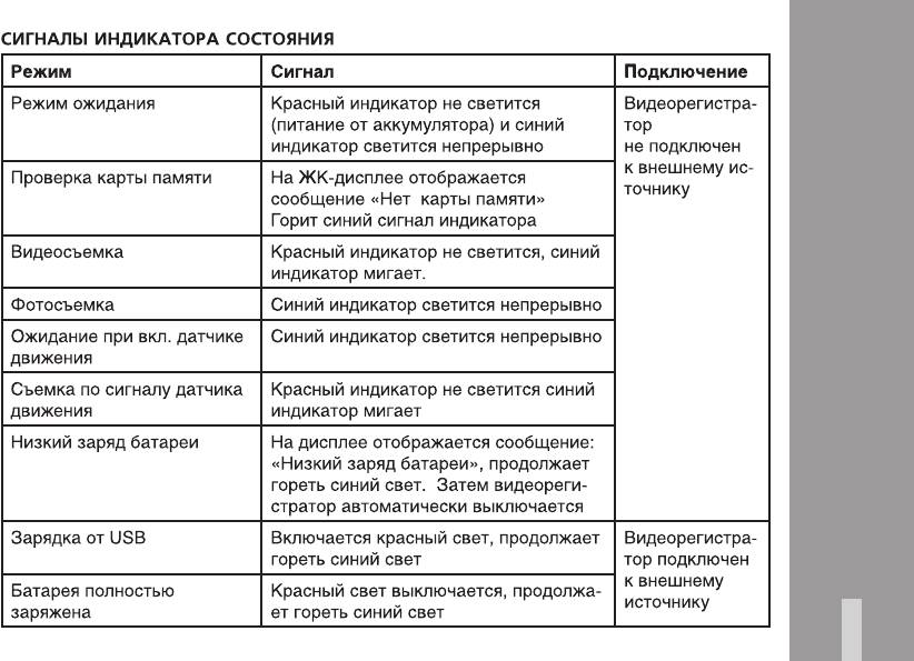 Видеосъемка Красный индикатор не светится, синий