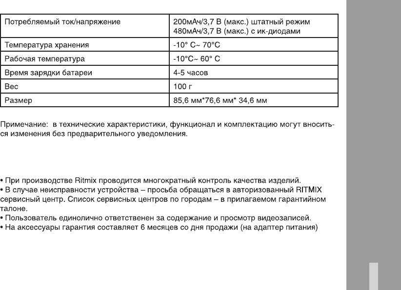 • В случае неисправности устройства – просьба обращаться в авторизованный RITMIX