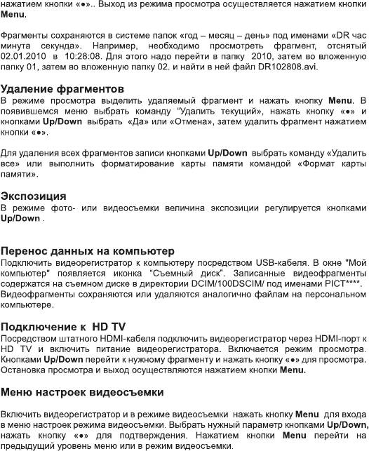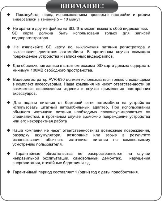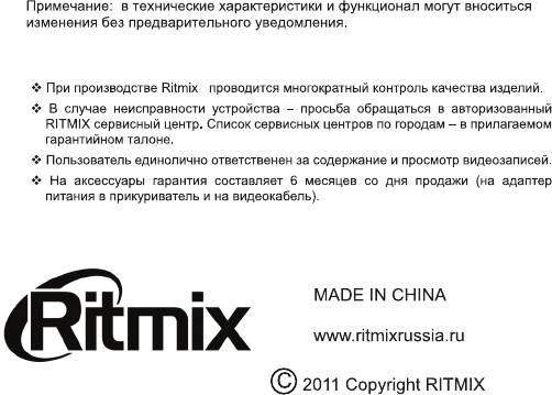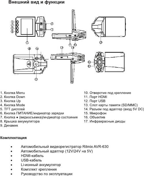 Инструкция к Видеорегистратору Ritmix AVR-630