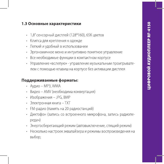 Инструкция к MP3 плееру Ritmix RF-4150 8Gb Black