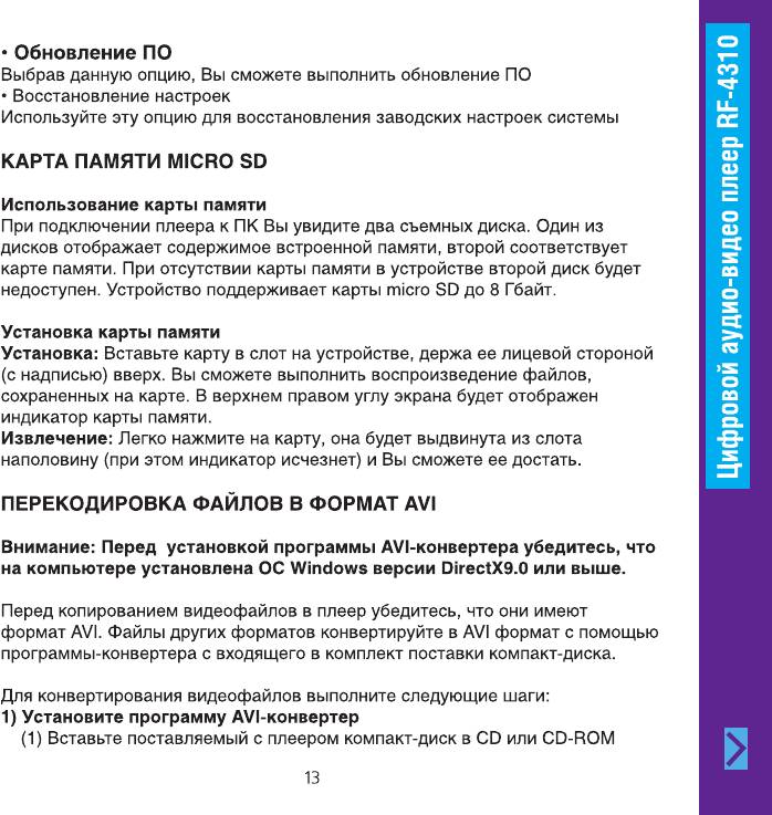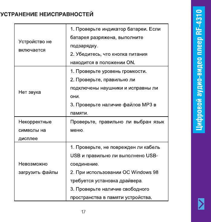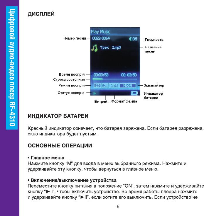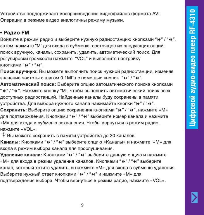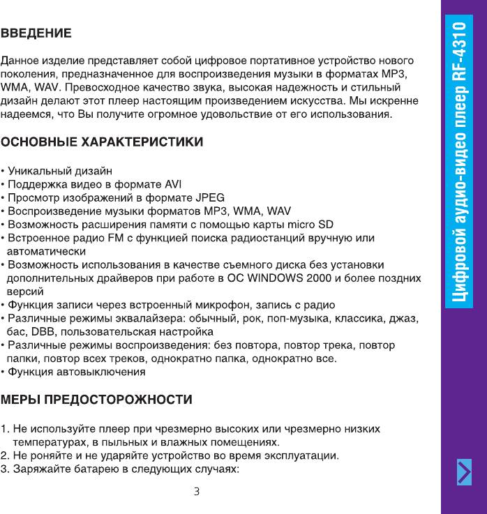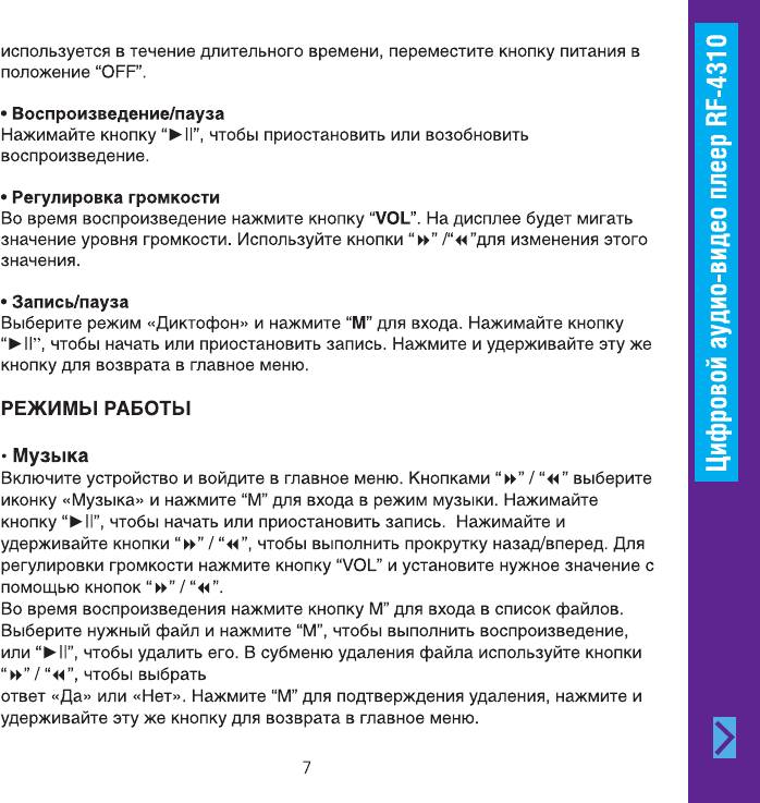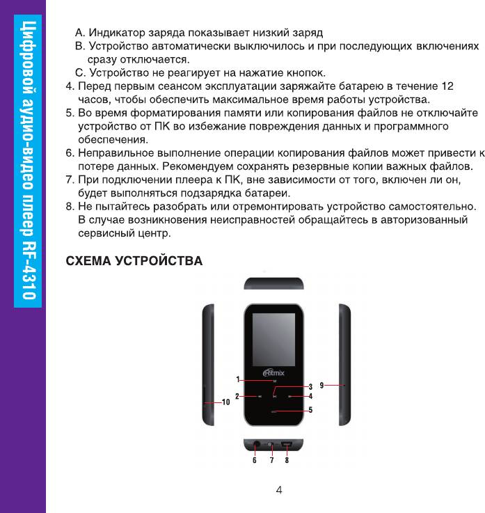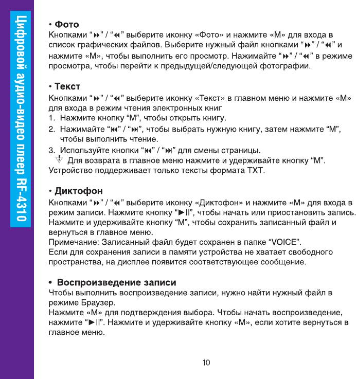 Инструкция к MP3 плееру Ritmix RF-4310 8GB Black