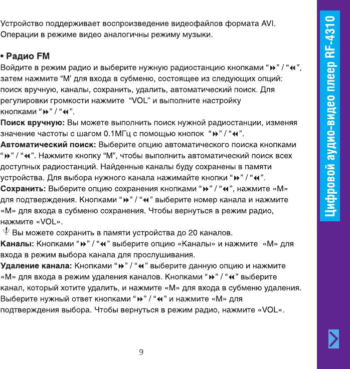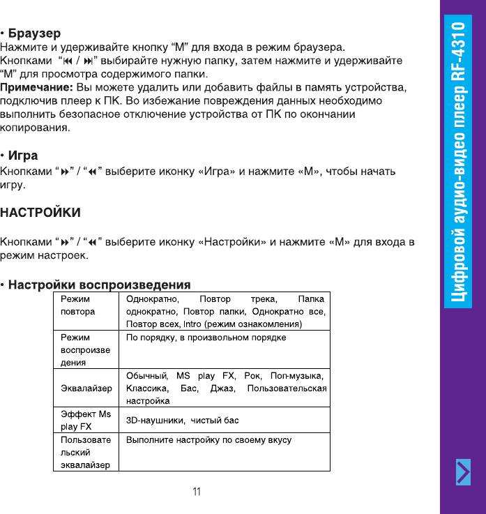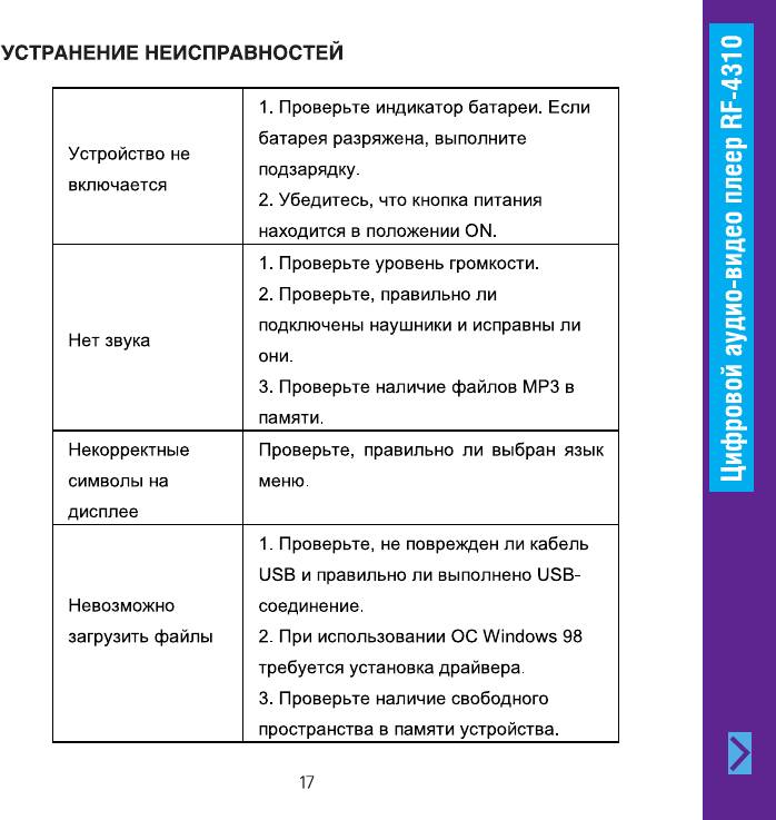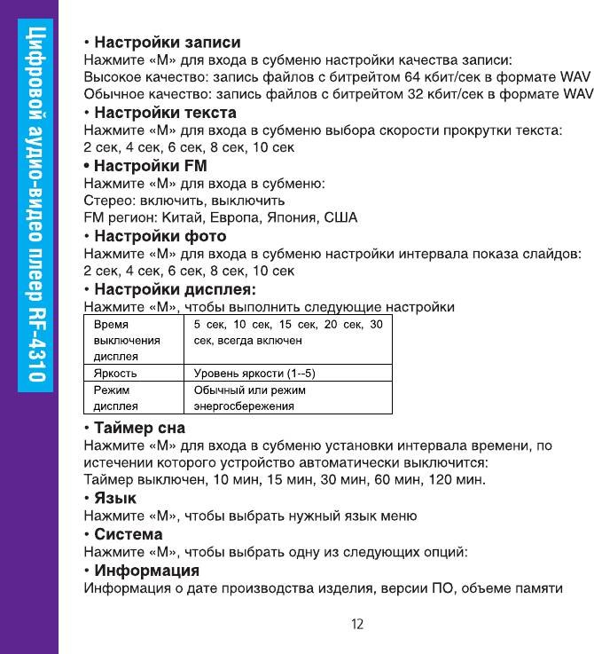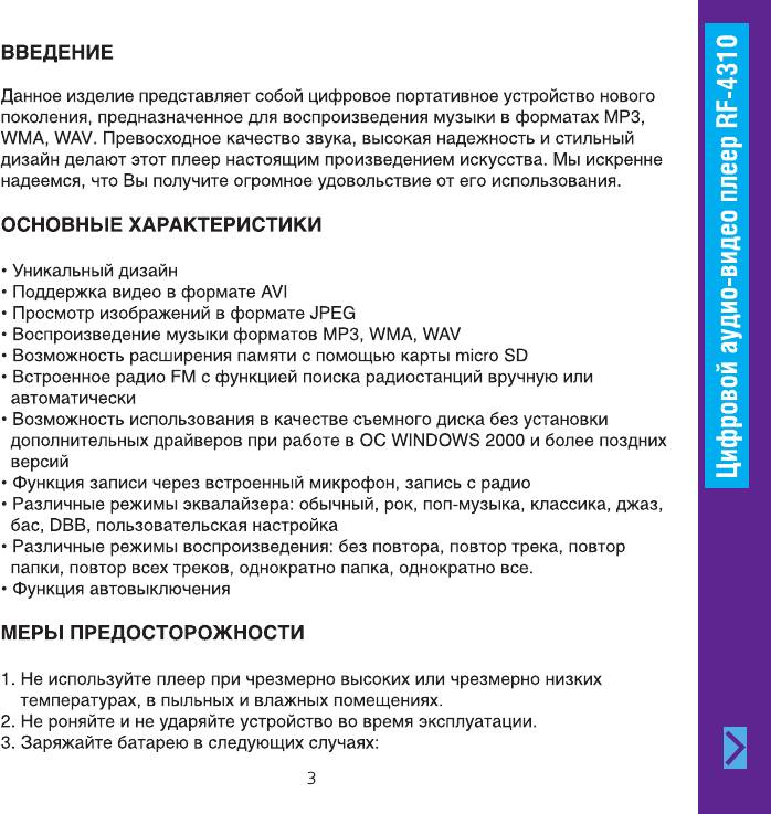 Инструкция к Портативному Плееру Ritmix RF-4310