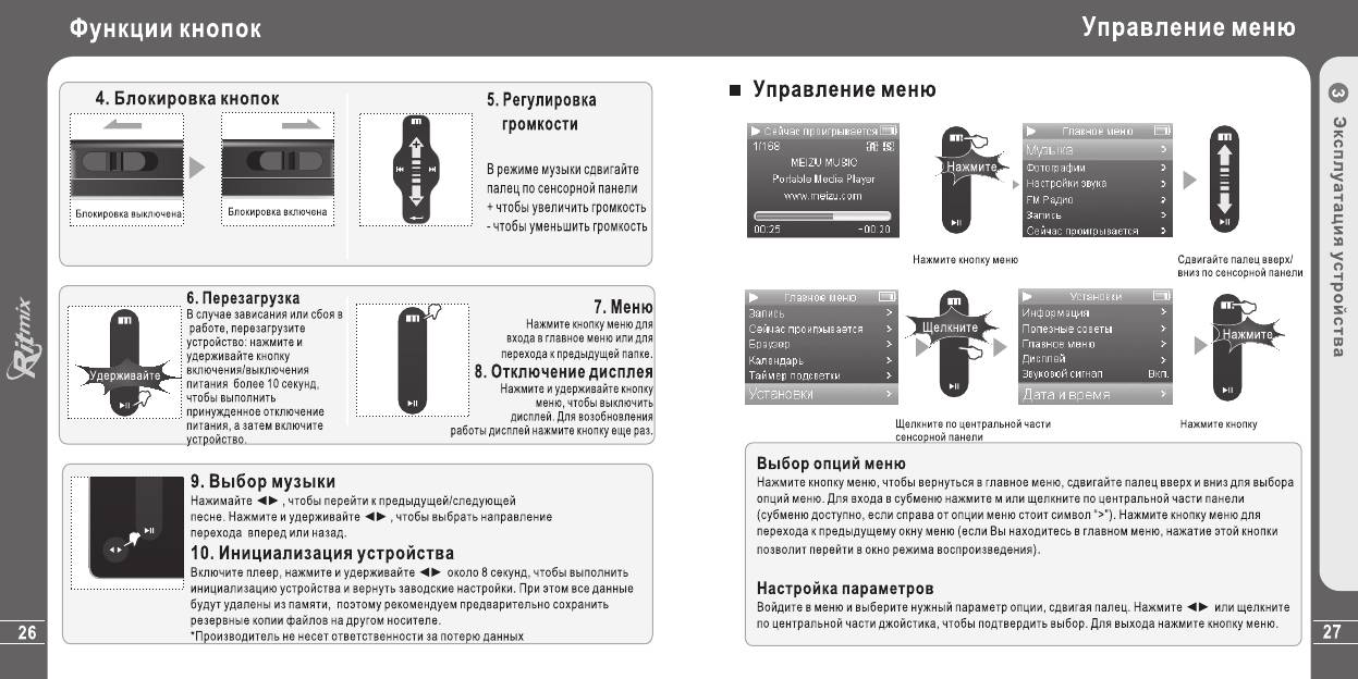 Инструкция к Портативному Медиаплееру Ritmix RF-7400 (8Gb)