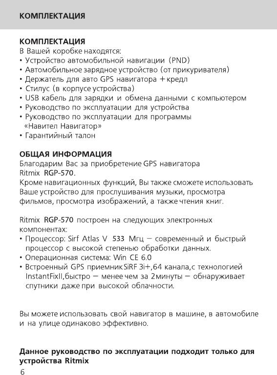 Инструкция к Gps Навигатору Ritmix RGP-570