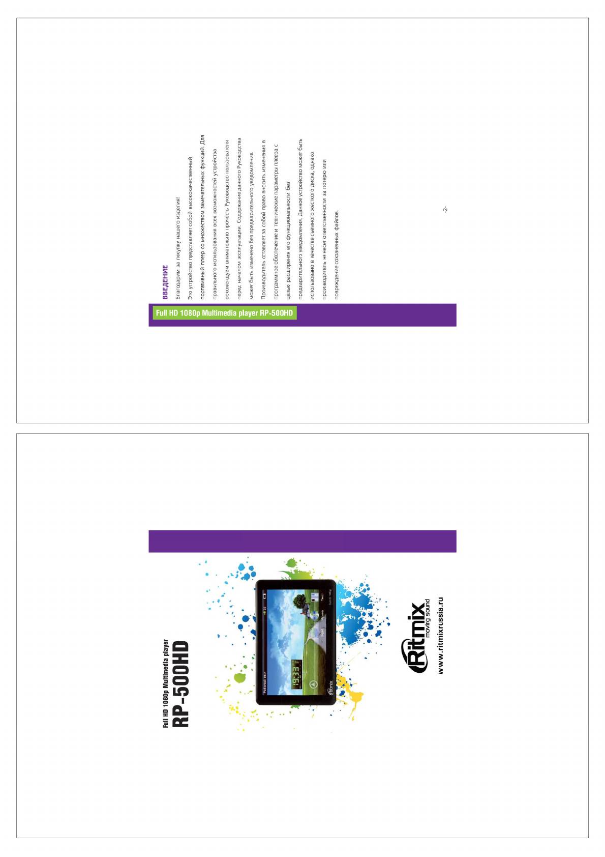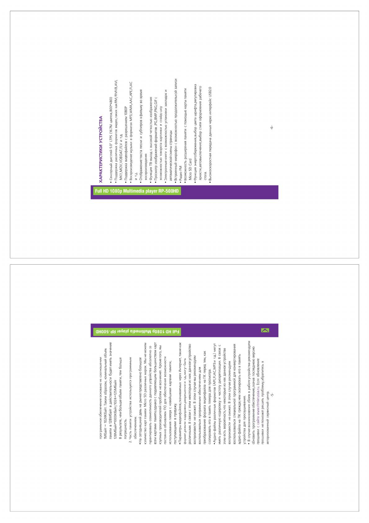 Аннотации для MP3 плеера Ritmix RP-500HD 8Gb в формате PDF