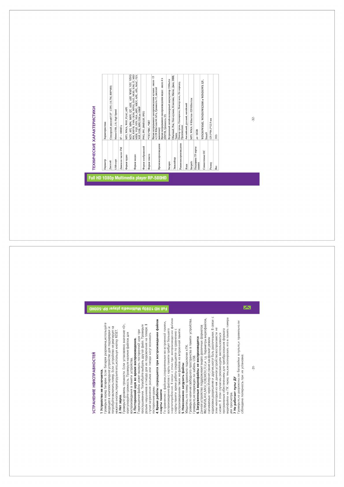 Инструкция к MP3 плееру Ritmix RP-500HD 8Gb