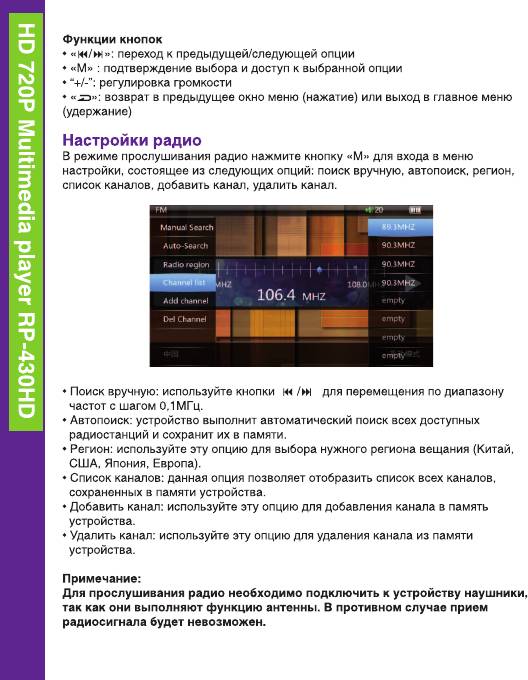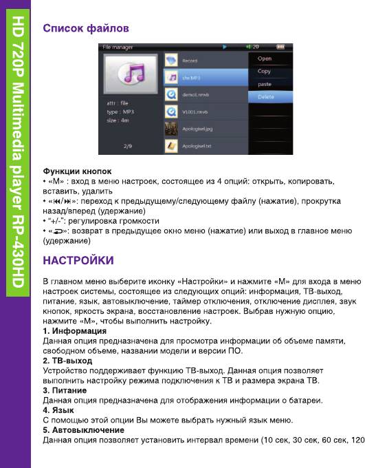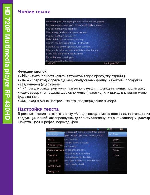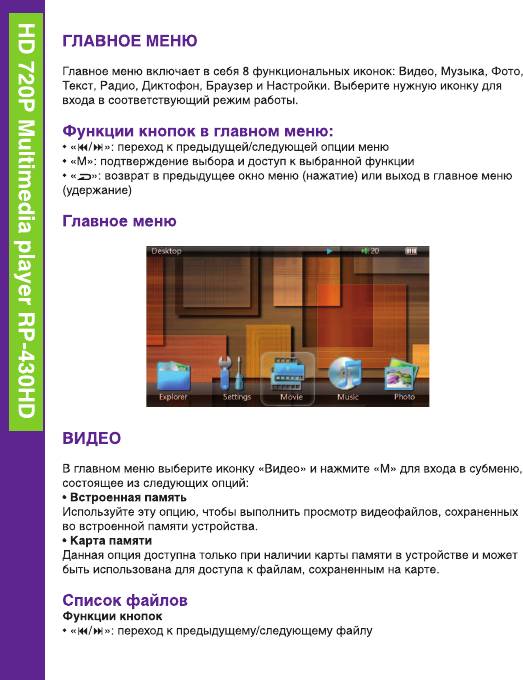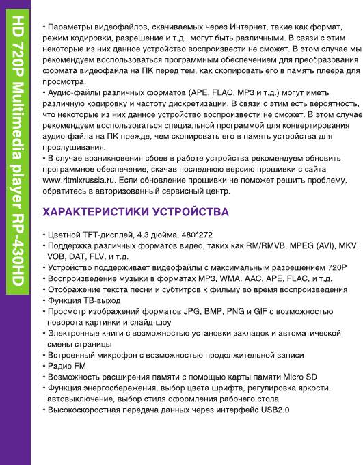 Аннотации для Ritmix RP430HD 4Gb Black в формате PDF